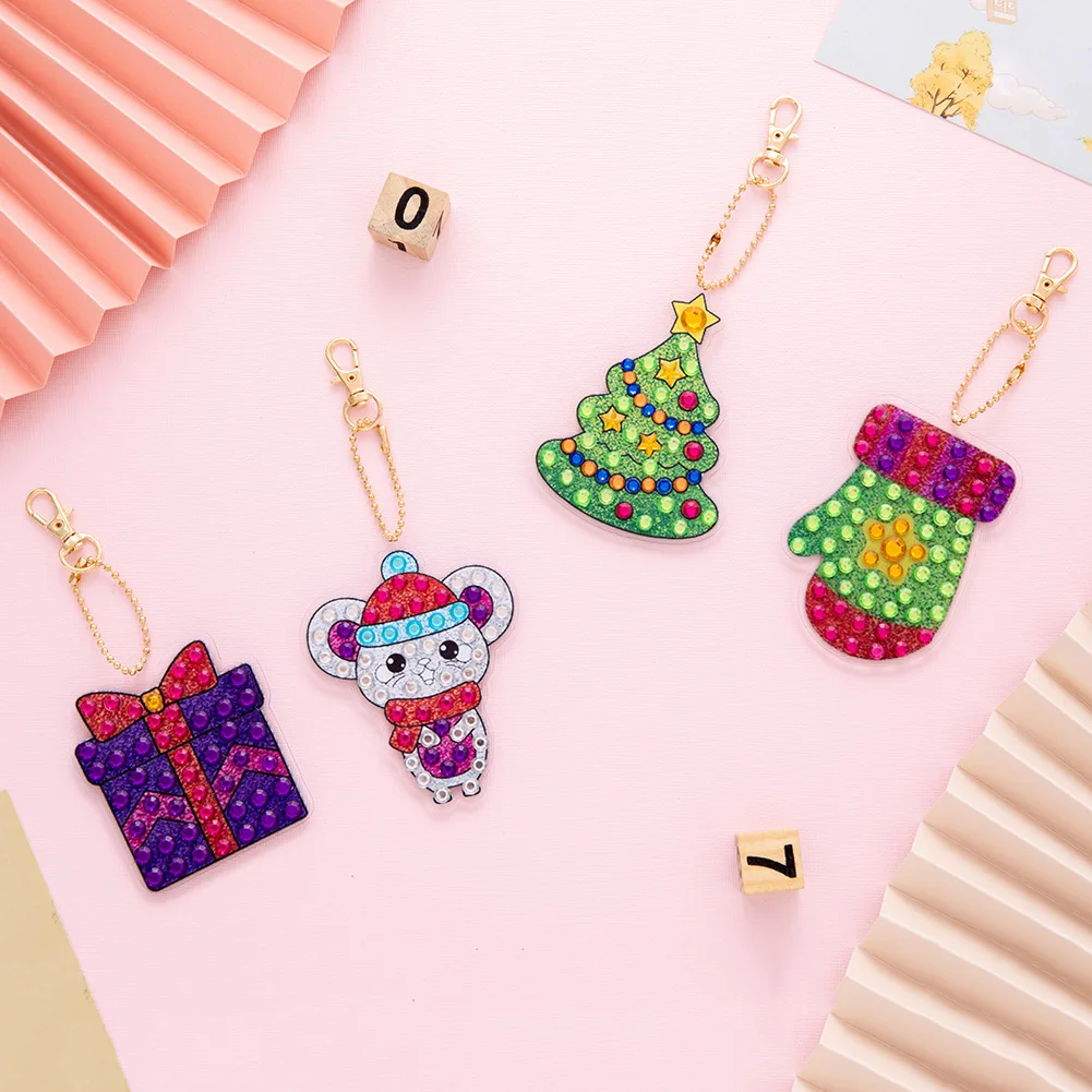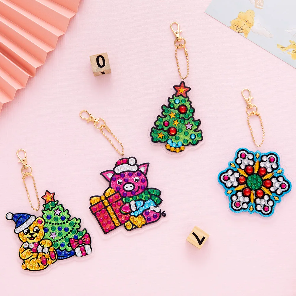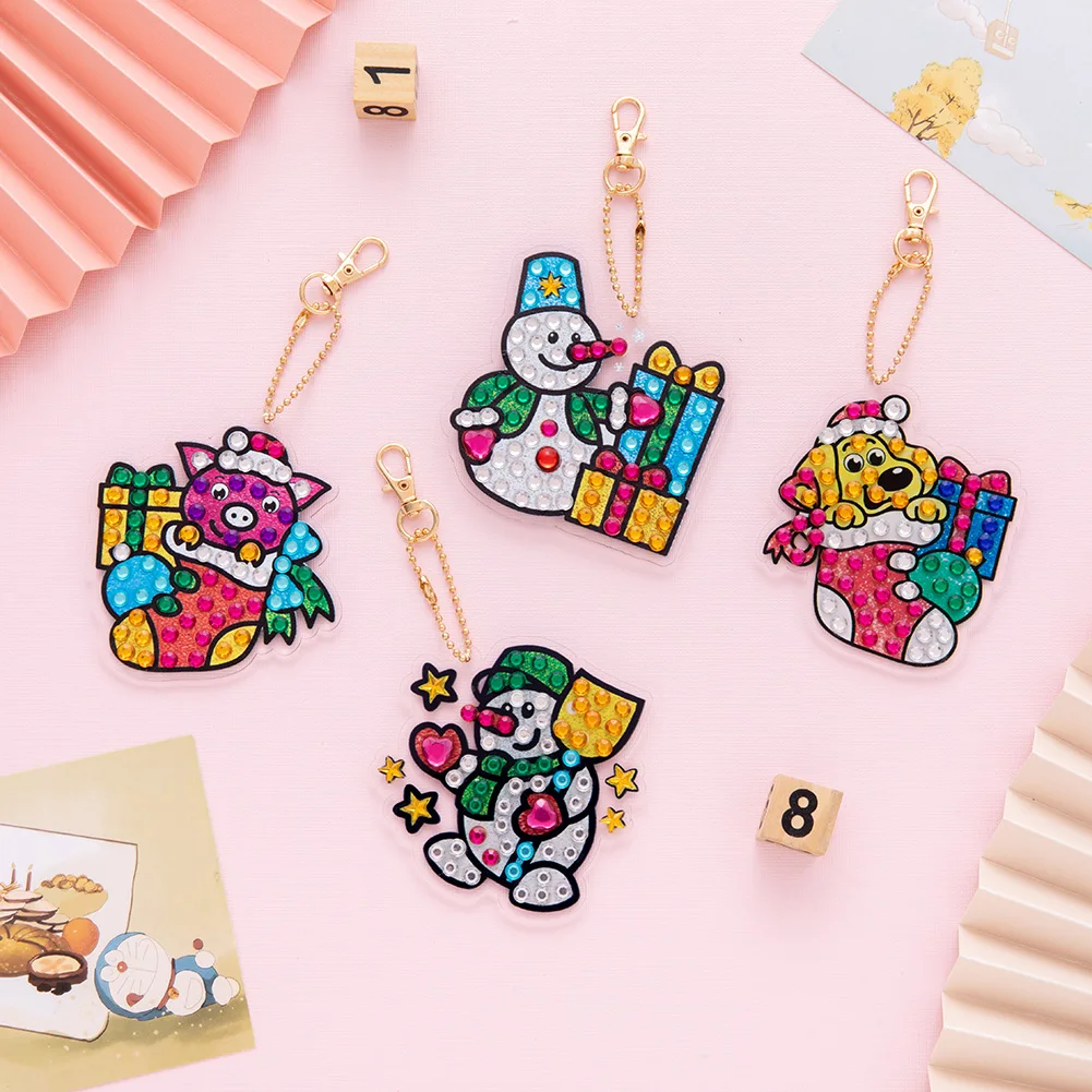 Брелок Стразы с рисунком, мозаика особой формы сделай сам, 4 шт., декоративный подарок для детей 50X70 мм