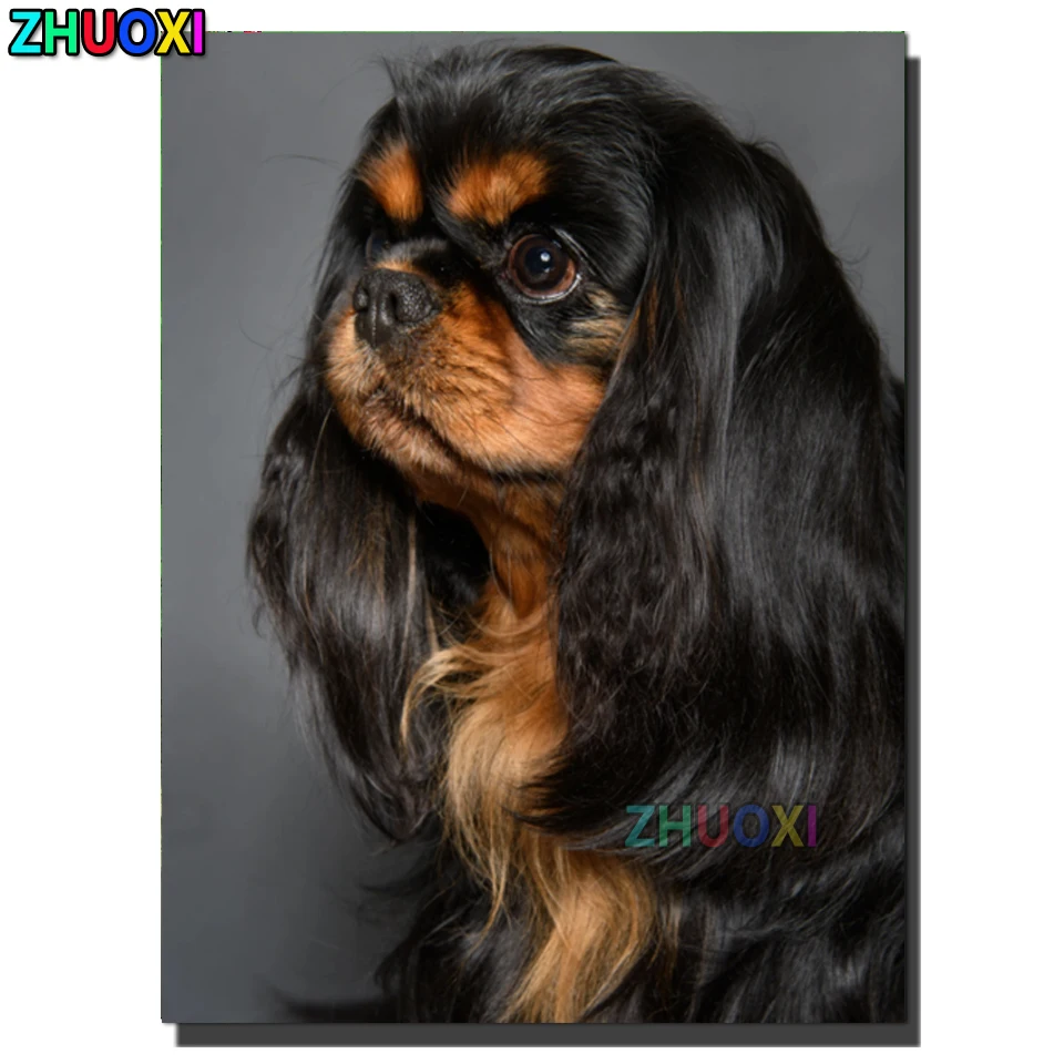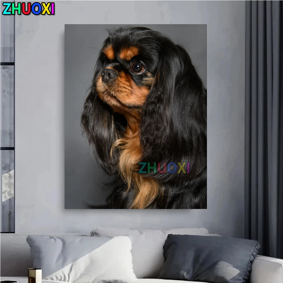 Алмазная мозаика 5D сделай сам, картина из круглых страз, полная вышивка с изображением собачки, Карла спаниеля, украшение для дома