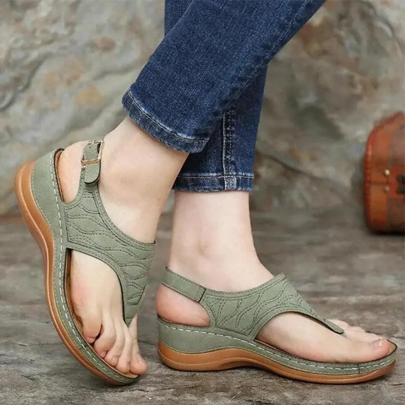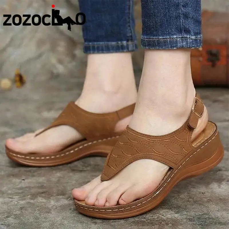 Сандалии женские на танкетке, босоножки на плоской подошве, с клипсой, Повседневная летняя пляжная обувь на танкетке, женские сандалии на платформе, шлепанцы