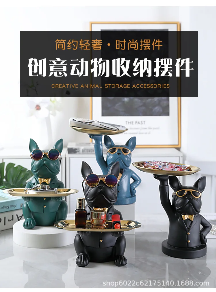 Фигурка французского бульдога, контейнер для хранения, Домашний Органайзер, крутые украшения для собак, поднос для хранения ключей, конфеты, искусственный Декор