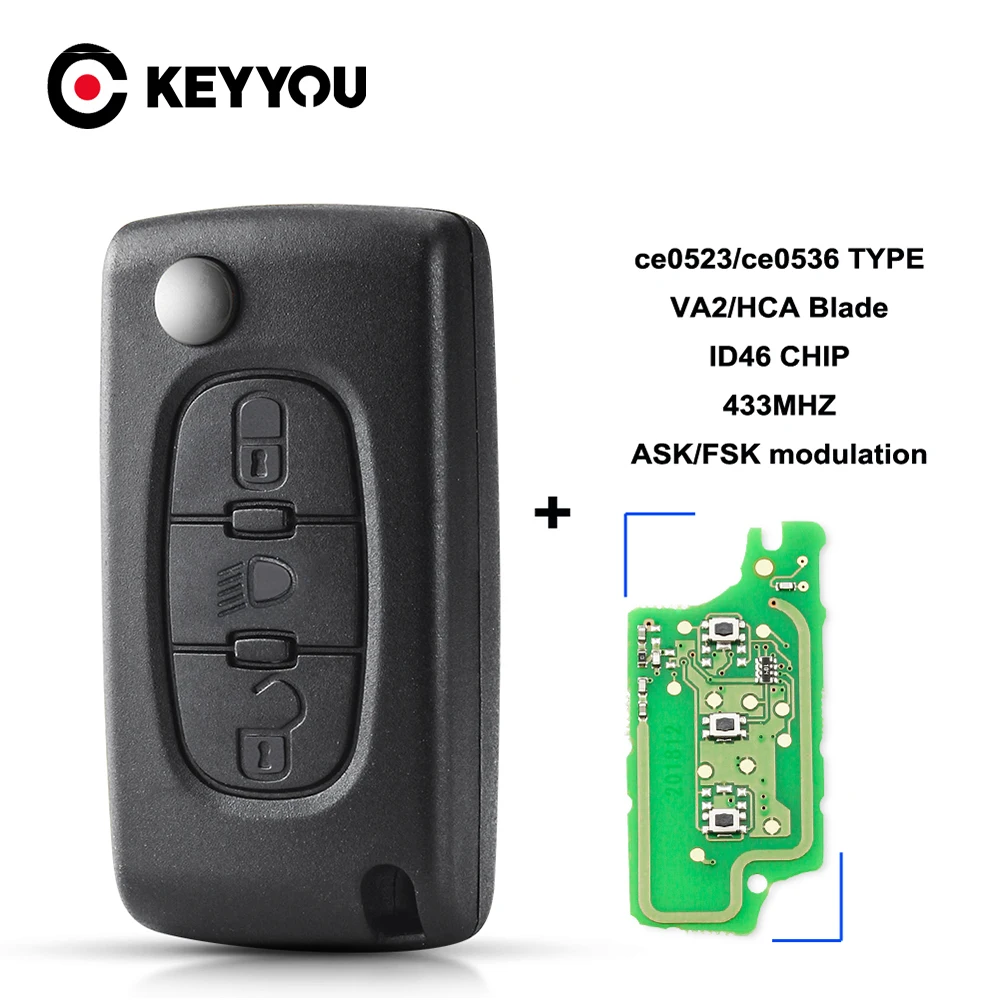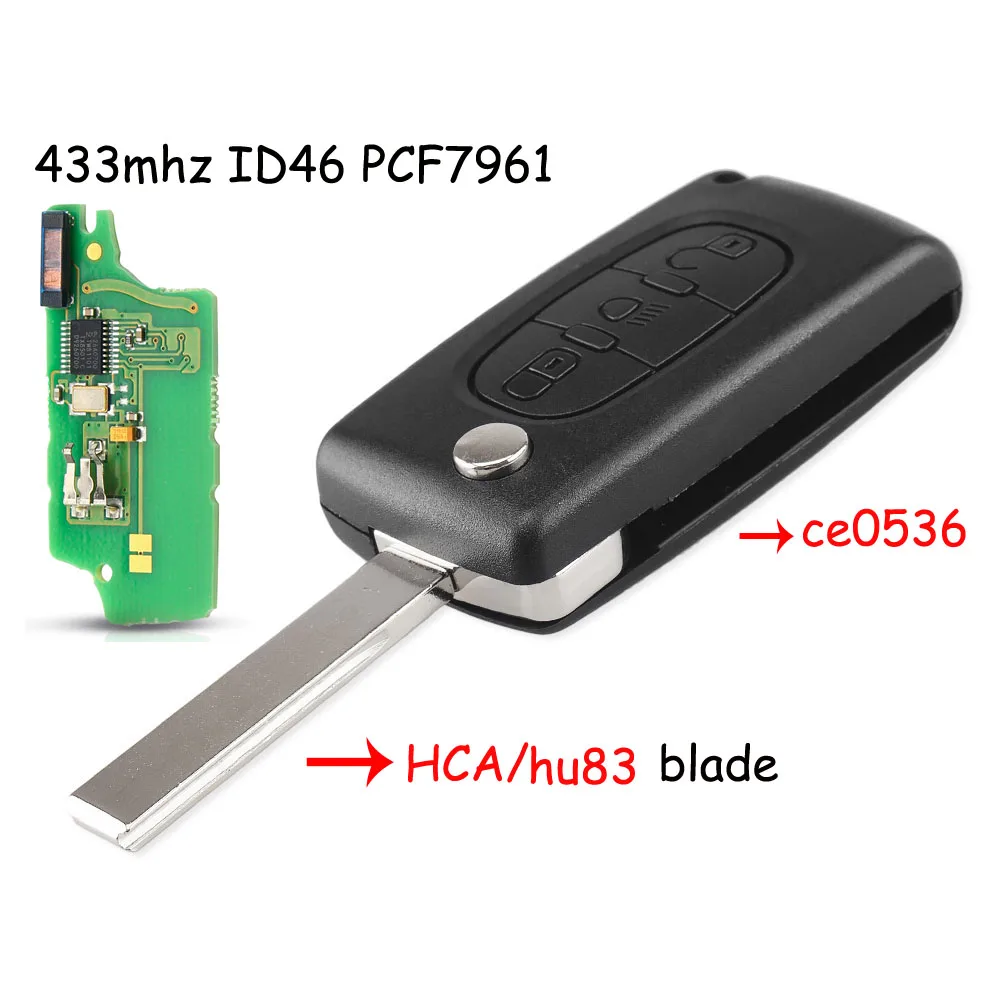 Ключ дистанционного управления Citroen C2C3C4C5C6C8, 433 МГц, 3 кнопки