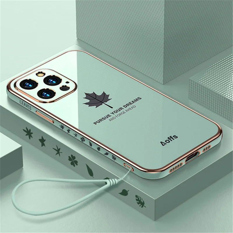 Чехол для телефона с квадратной рамкой и Кленовым листом для iPhone...