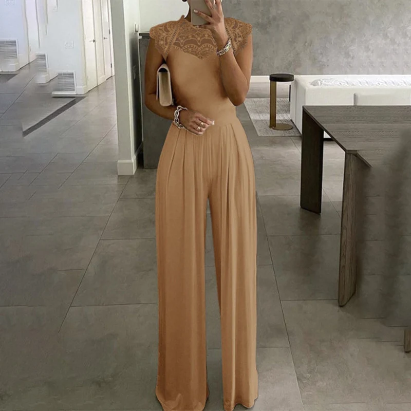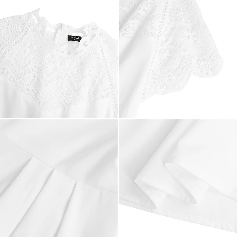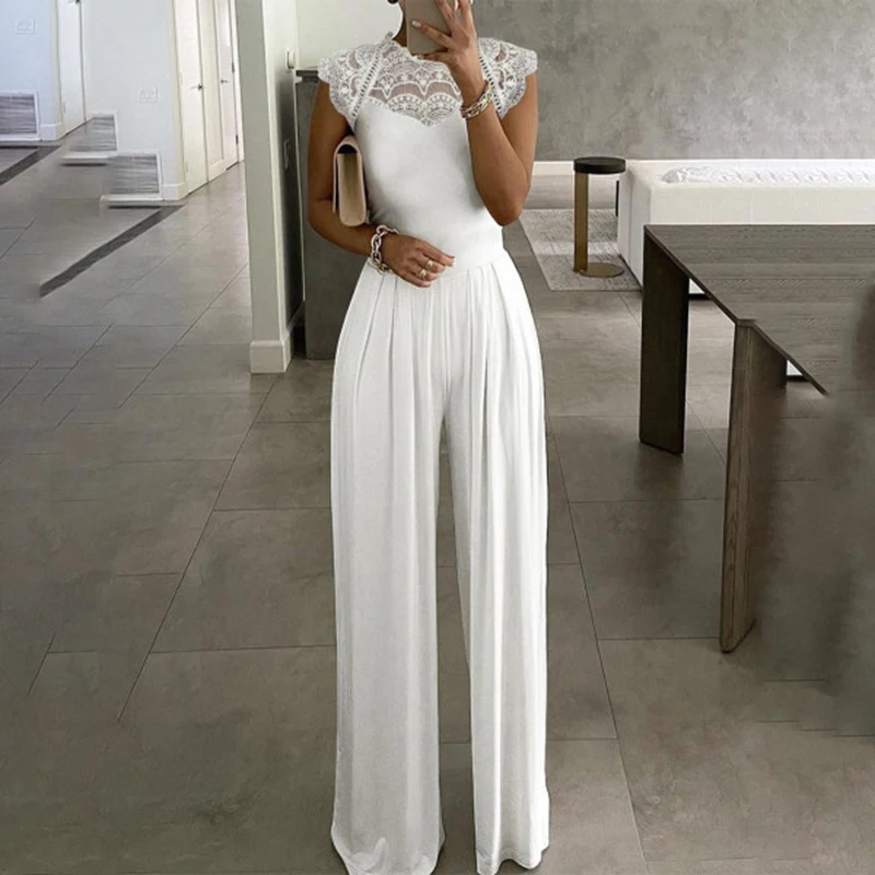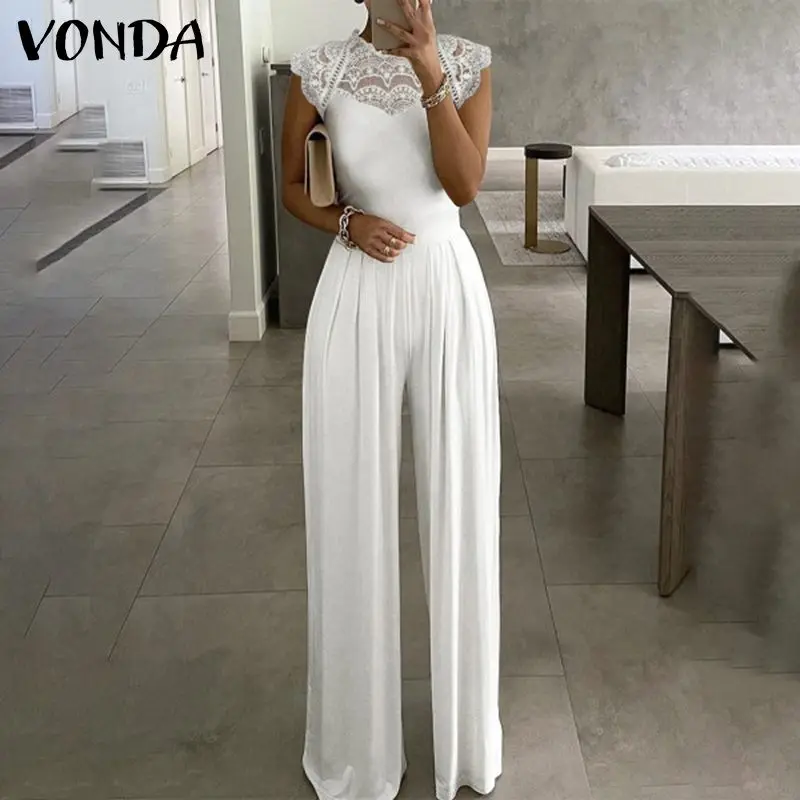 2022 женские сексуальные комбинезоны VONDA без рукавов с круглым вырезом, женские повседневные кружевные комбинезоны с широкими штанинами, комбинезоны оверсайз
