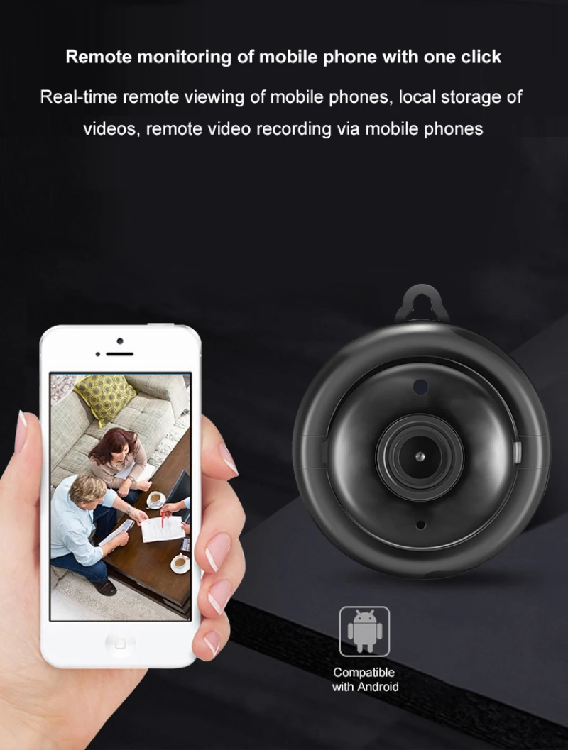 Легко в любом месте! Эта маленькая камера с жестким зарядным кабелем и базой, при зарядке во время записи вы можете вручную повернуть угол записи на 360 градусов.