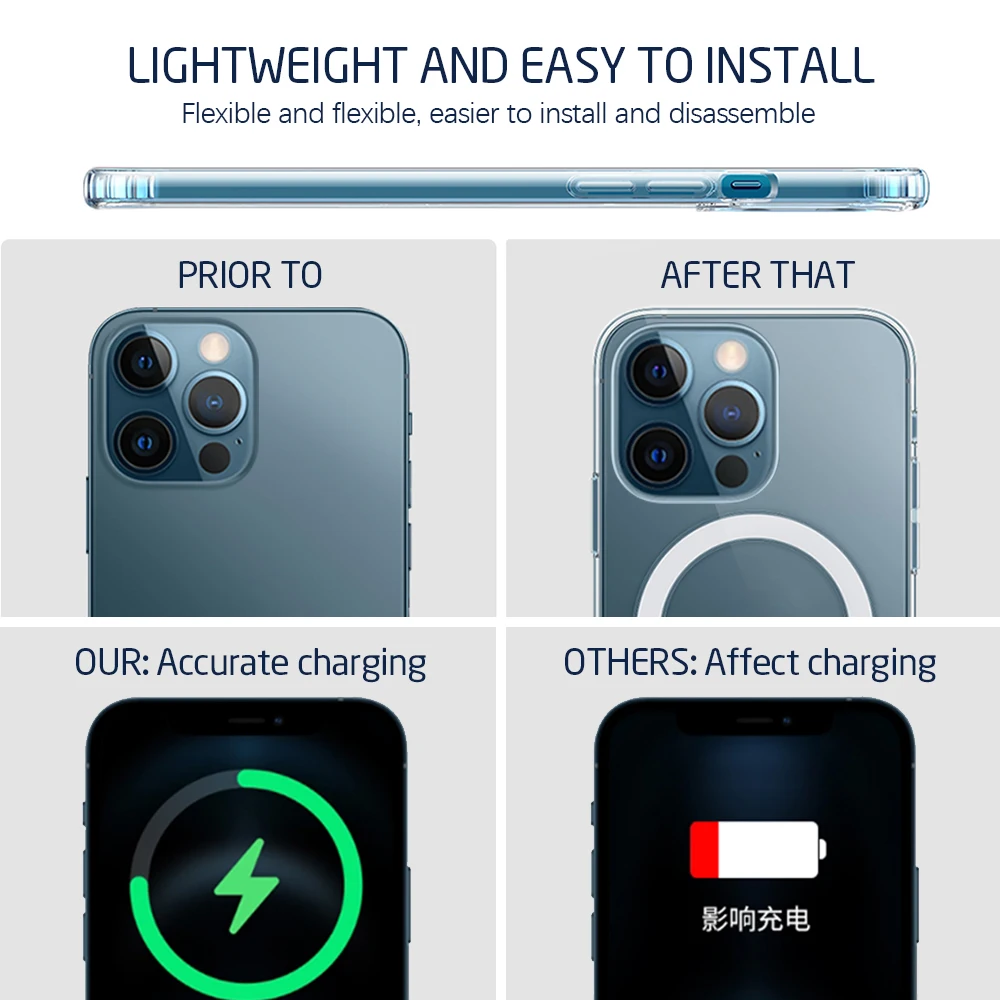 Чехол для телефона Magsafe, прозрачный чехол для Iphone 12 13 Iphon...