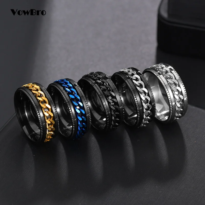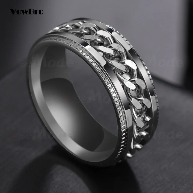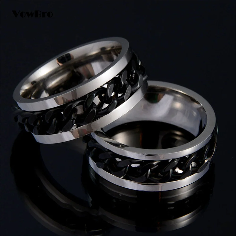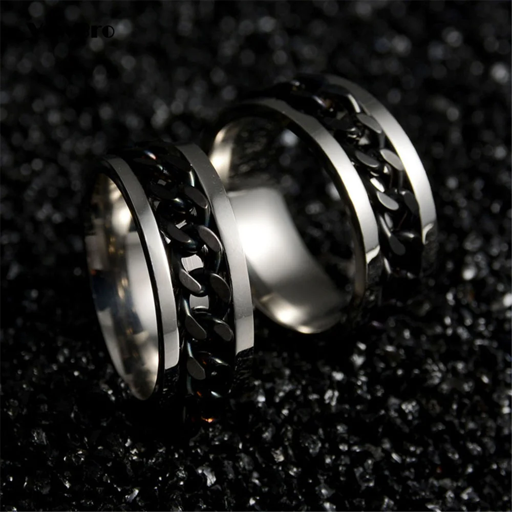 Крутое вращающееся кольцо из нержавеющей стали для мужчин и женщин, кольцо для пар, кольцо с высокой искусственной цепью, поворотные кольца в стиле панк, для мужчин и женщин, ювелирные изделия для вечеринки, подарок