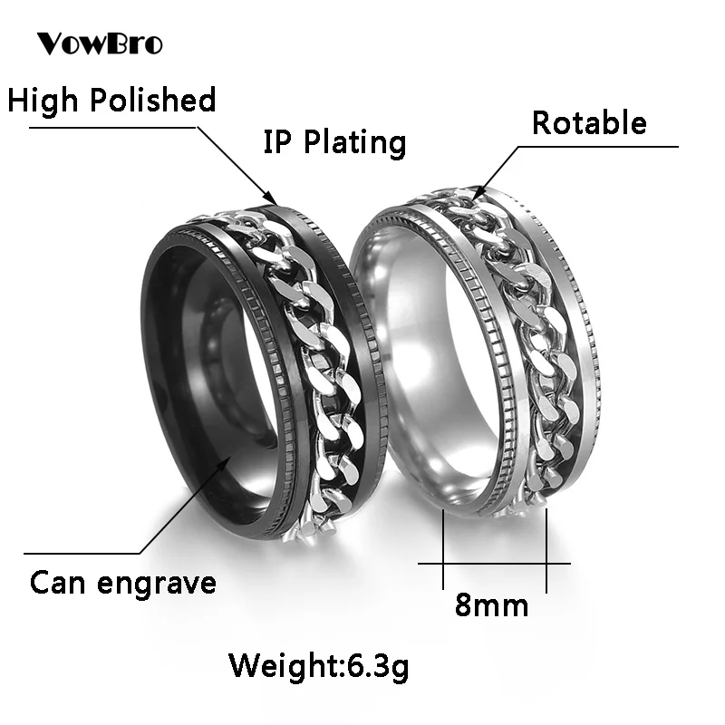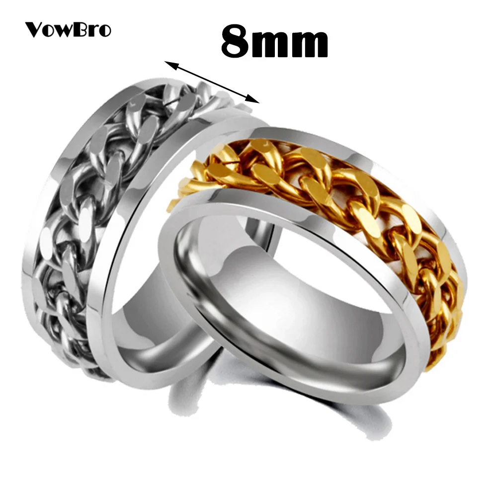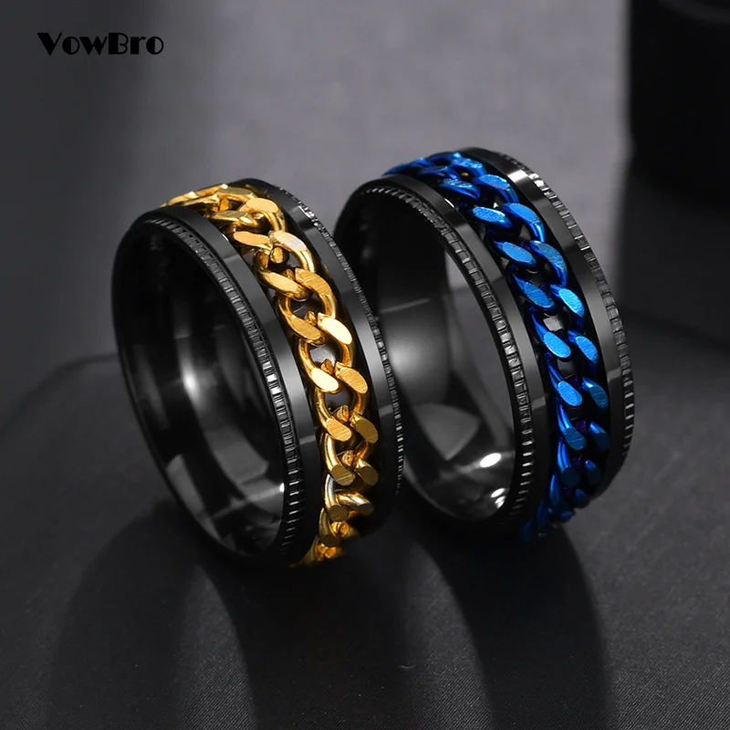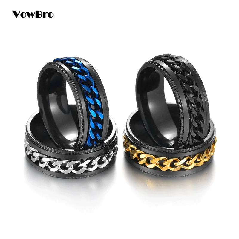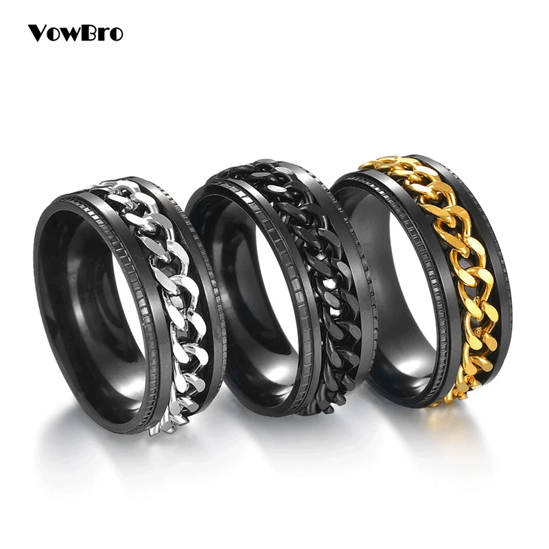Крутое вращающееся кольцо из нержавеющей стали для мужчин и женщин, кольцо для пар, кольцо с высокой искусственной цепью, поворотные кольца в стиле панк, для мужчин и женщин, ювелирные изделия для вечеринки, подарок