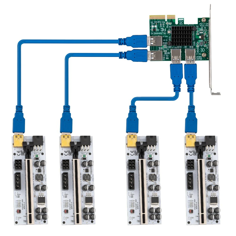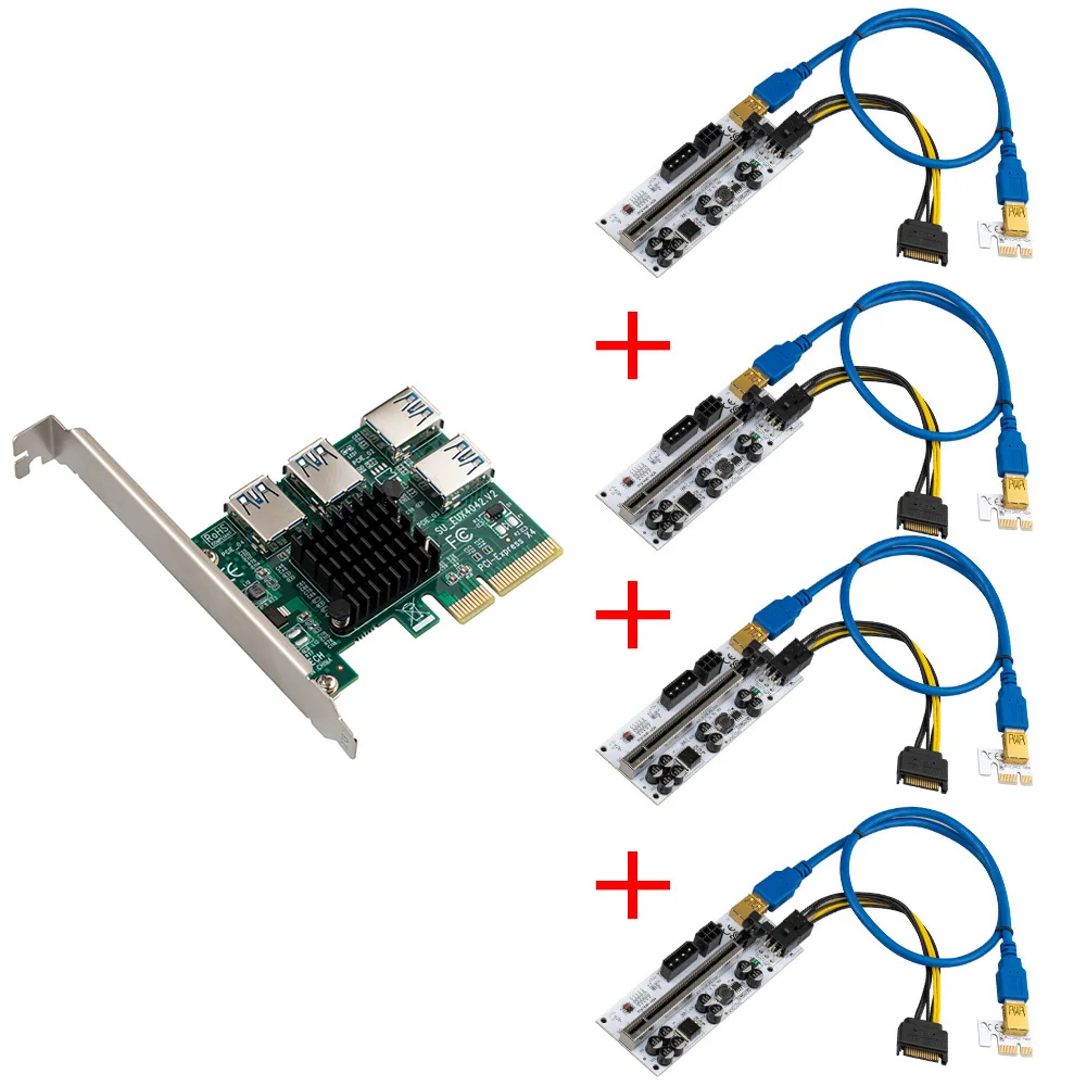 4 шт. райзер для видеокарты PCI-E Express 1x до 16x Райзер 010 адаптер карты PCIE 1 до 4 слота PCIe порт множителя карты для майнинга биткоинов BTC