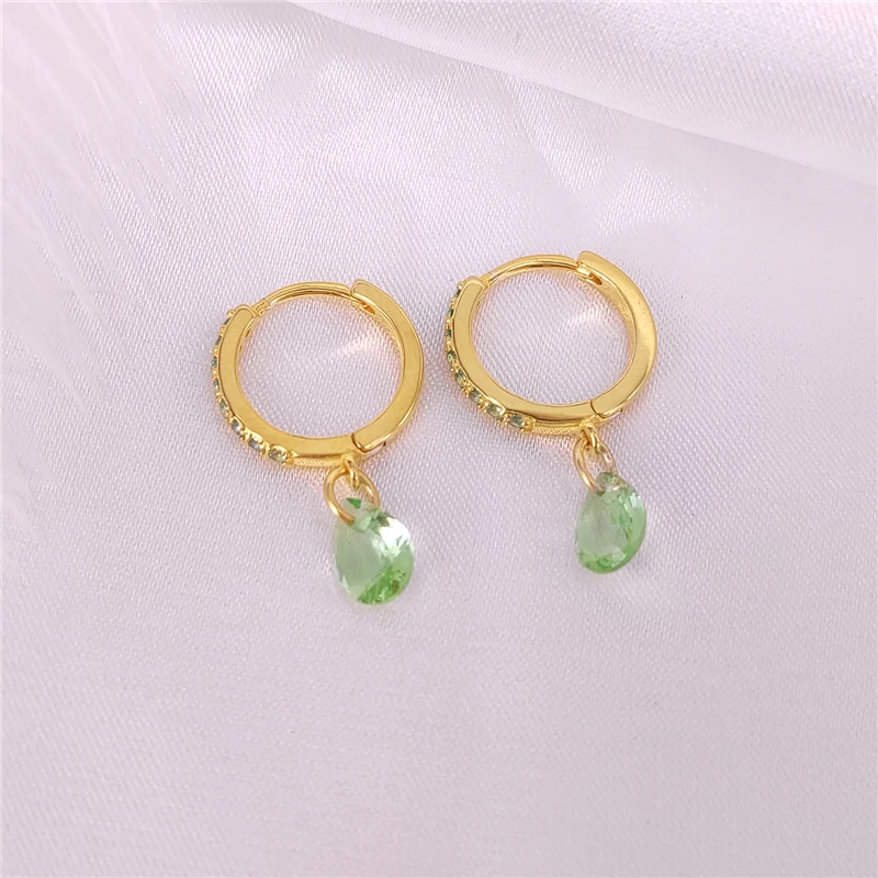 Женские серьги-капельки из серебра 925 пробы с зеленым Цирконом