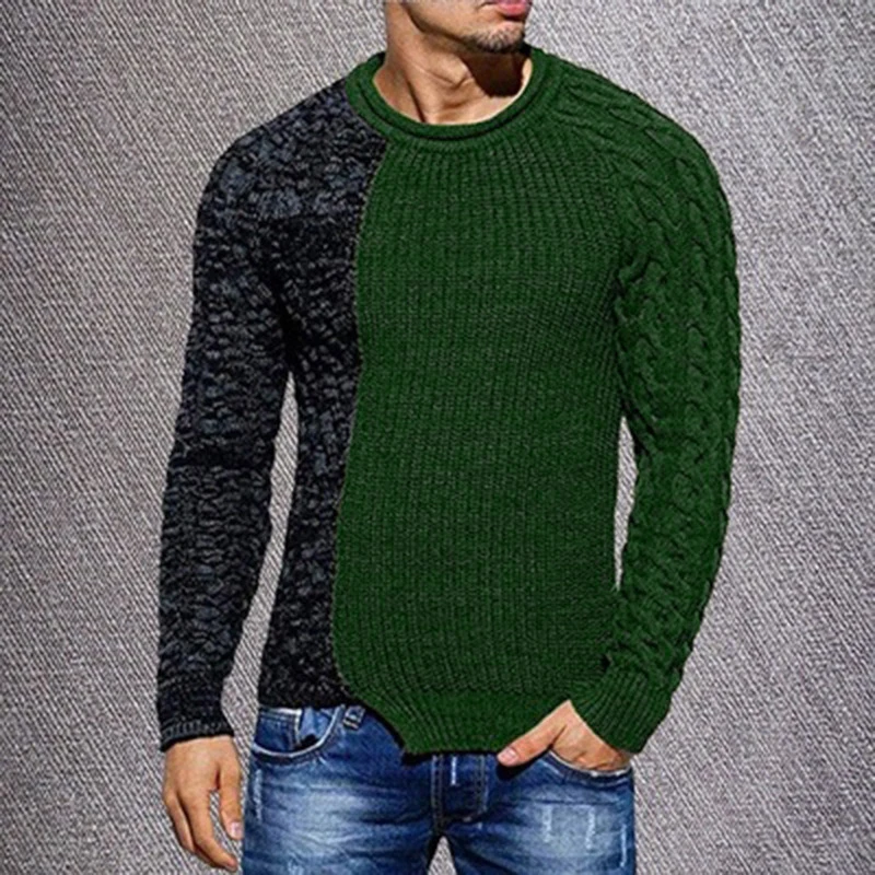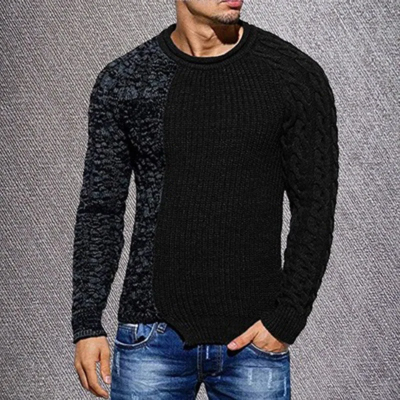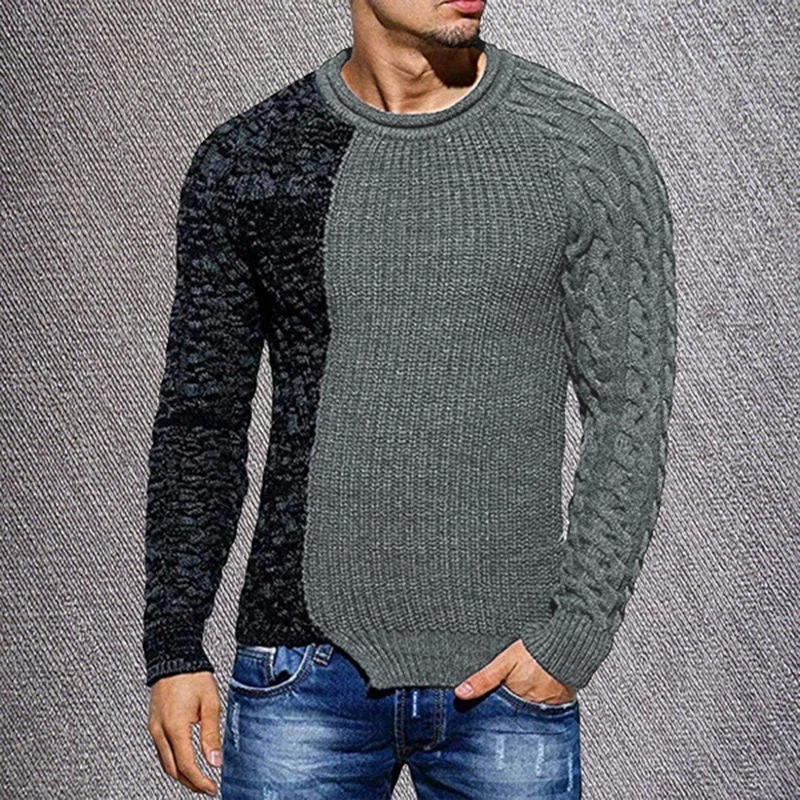 Повседневные мужские зимние теплые трикотажные топы 2021, модный свитер с длинным рукавом и круглым вырезом в стиле пэчворк для мужчин, Осенние простые Джемперы, уличная одежда