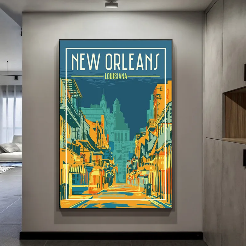 Нью-Йорк Голландия Амстердам Лондон холст картина ретро Европа Амер...