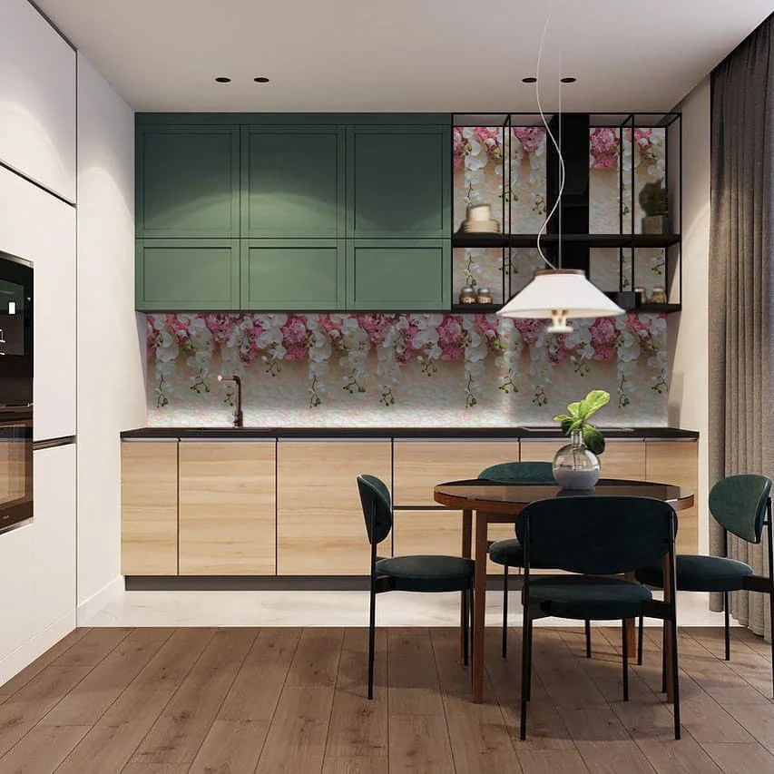 Кухонный фартук для пространства междунавесными шкафами, плитой и столешницейне просто защищает стены от влаги,копоти и загрязнений, но и придаеткухне воздушность, наполняет новымикрасками.Для его монтажа не требуетсядлительная подготовка и выравниваниестен. С его помощью можно быстро скрытьшероховатости и другие недостаткинастенной поверхности, а также придатьнеповторимую элегантность интерьеру.