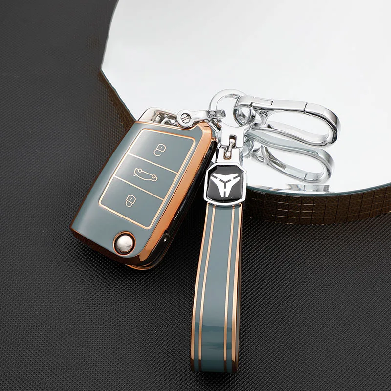 ТПУ чехол для автомобильного ключа с брелоком для Volkswagen VW Gol...