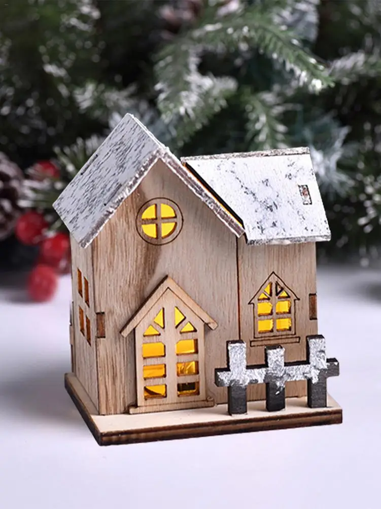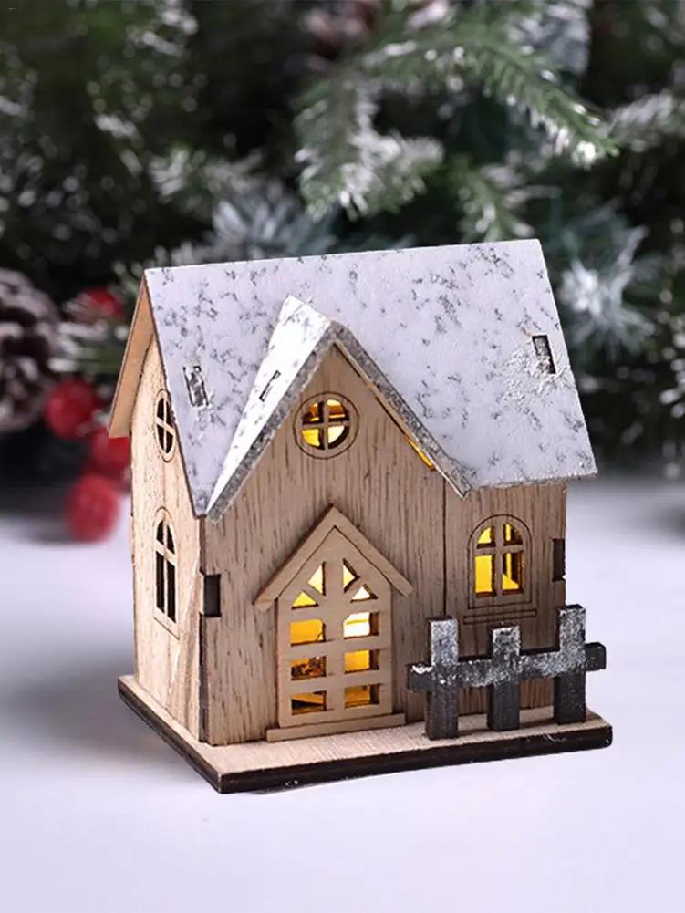 Рождественский светодиодный деревянный дом для дома, украшения для ...