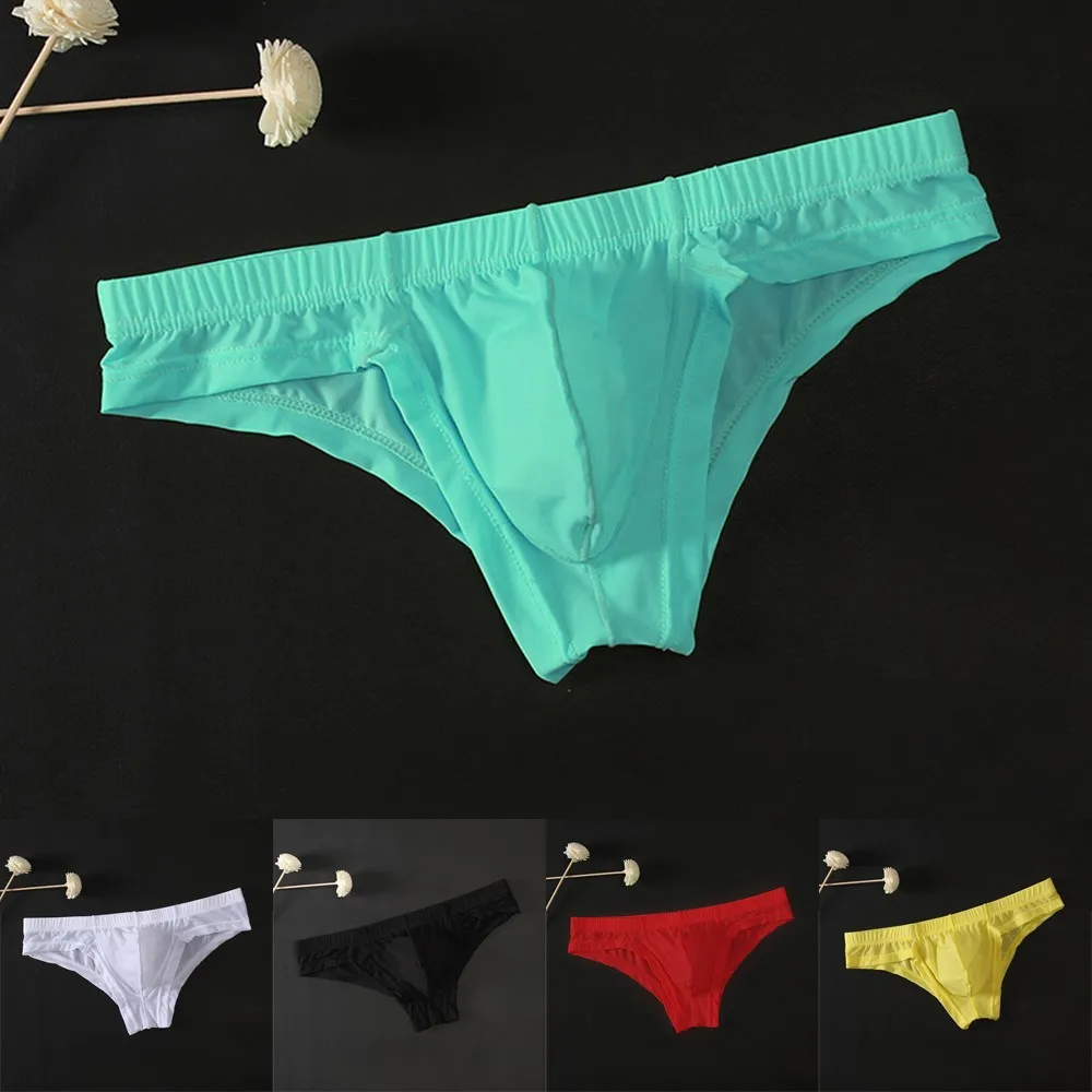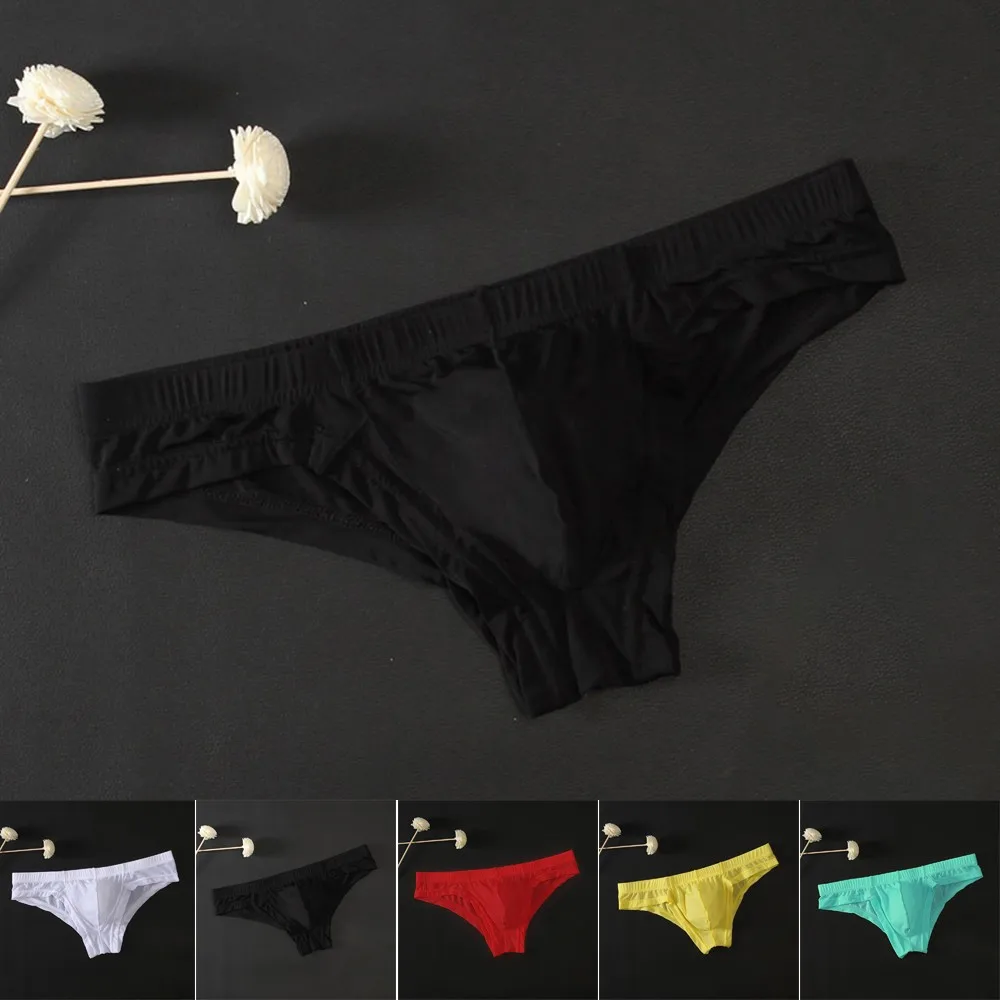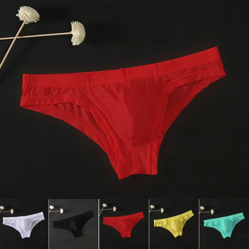 Трусы мужские сетчатые прозрачные, пикантное нижнее белье, трусы-брифы из ледяного шелка, с карманом, нижнее белье, шорты, нижнее белье