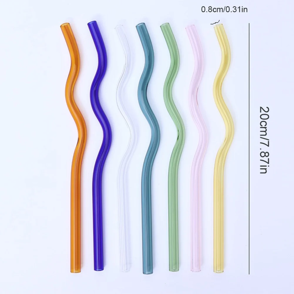 Многоразовая соломинка для питья 8 Х200 мм, боросиликатная стеклянная соломинка, 1 шт., волнистая цветная соломинка, инструмент для бара, аксессуар для вечевечерние с ржавчиной