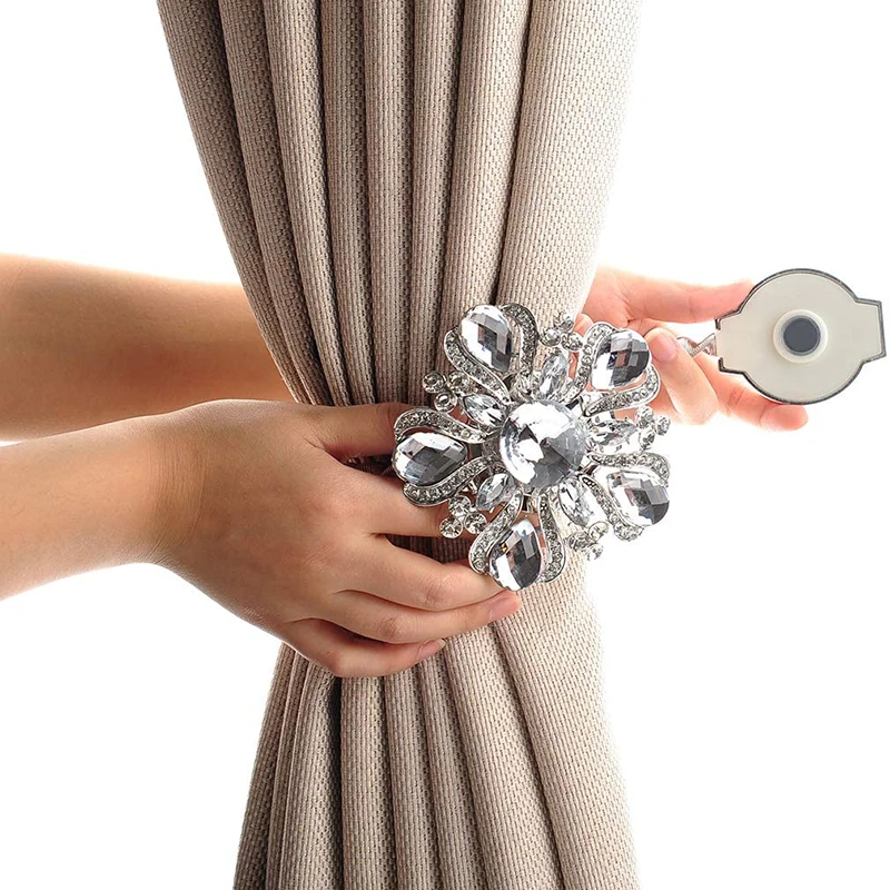 Застежка для штор, роскошный большой магнитный держатель для занавесок с кристаллами и зажимами для цветов