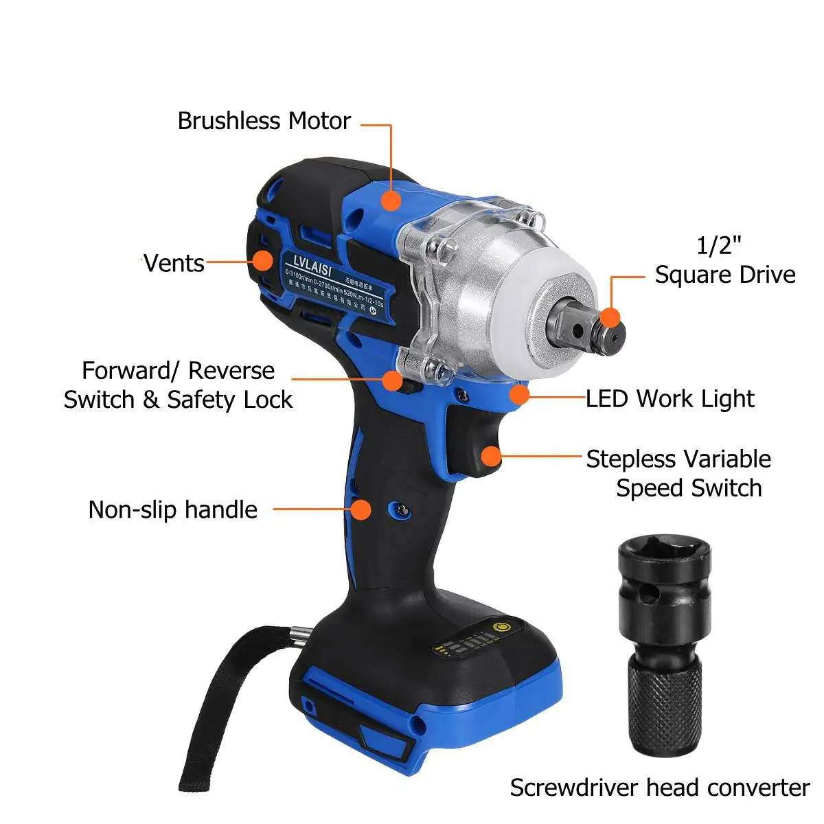 18 в 520N.m. Литий-ионный беспроводной 1/2 ''ударный ключ сменный драйвер для батареи Makita