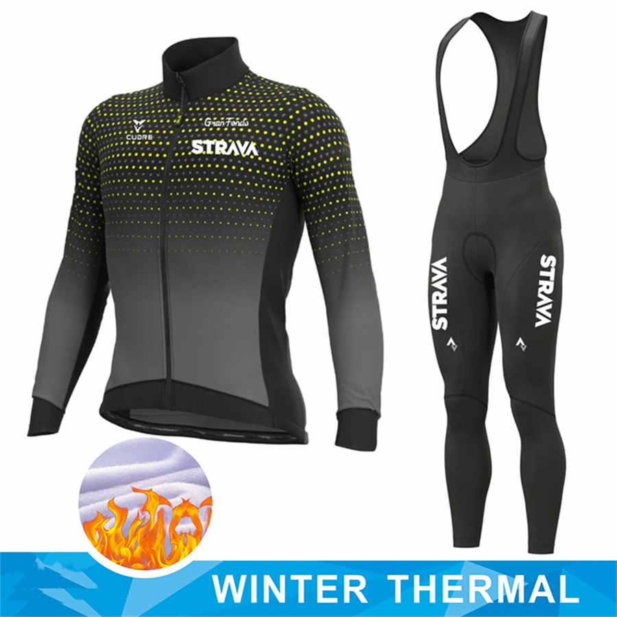 Зимний теплый флисовый трикотажный комплект для велоспорта STRAVA, ...