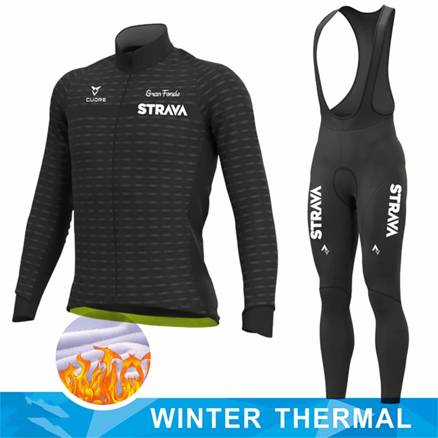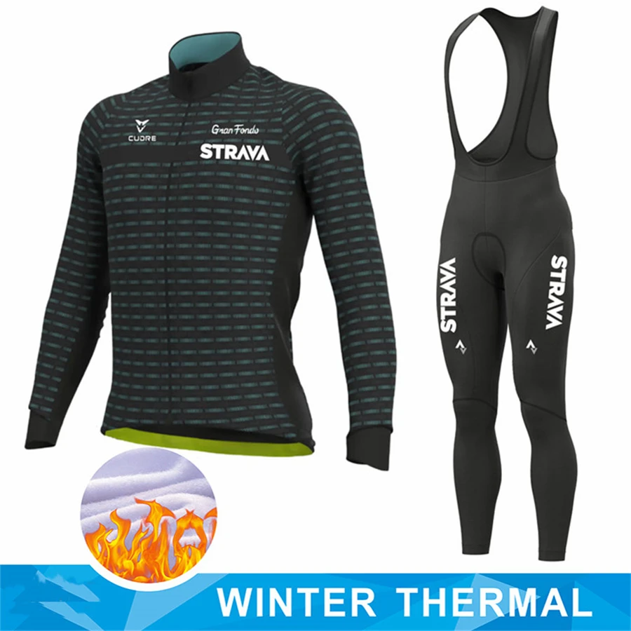 Новинка 2022, Зимняя Теплая Флисовая одежда STRAVA для велоспорта, мужской костюм из Джерси, одежда для езды на велосипеде и горном велосипеде, комплект из комбинезона и брюк