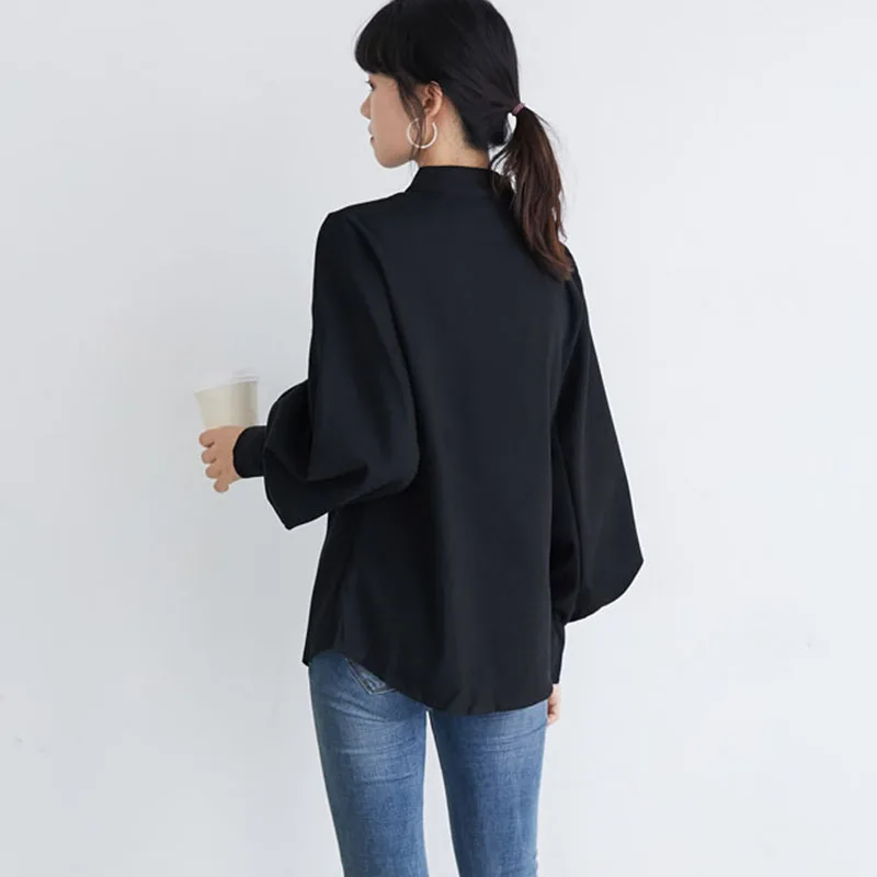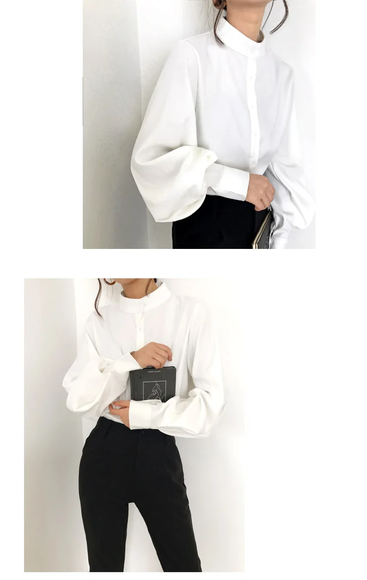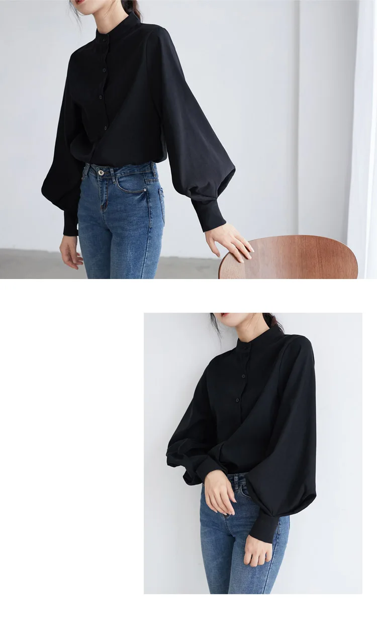 Рубашка женская однобортная с рукавами-фонариками, шикарная блузка, однотонная винтажная одежда, весна-осень