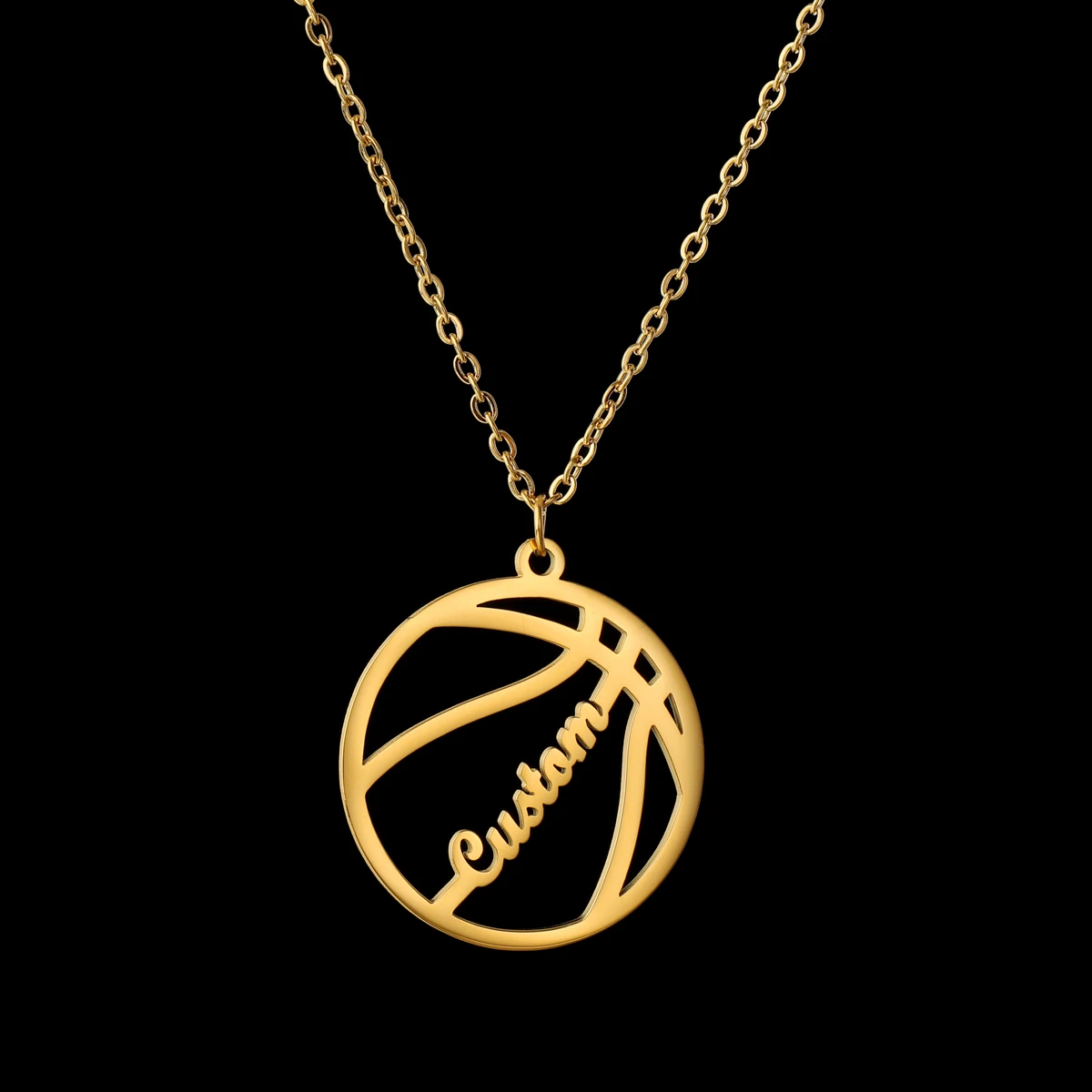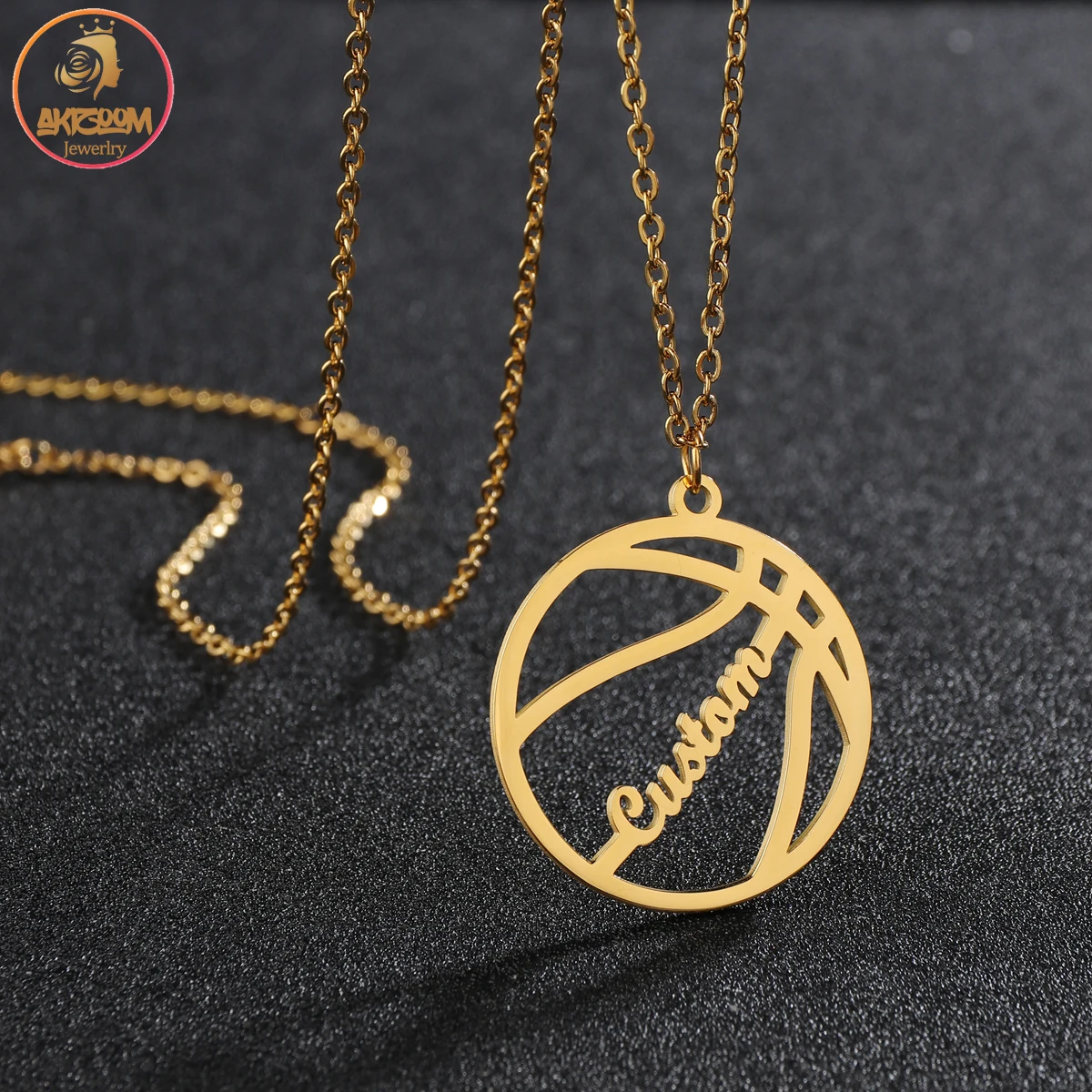 Akizoom, ожерелье в форме баскетбола с именем на заказ, золотая металлическая цепочка из нержавеющей стали, ювелирные изделия для мальчиков, подарок на заказ