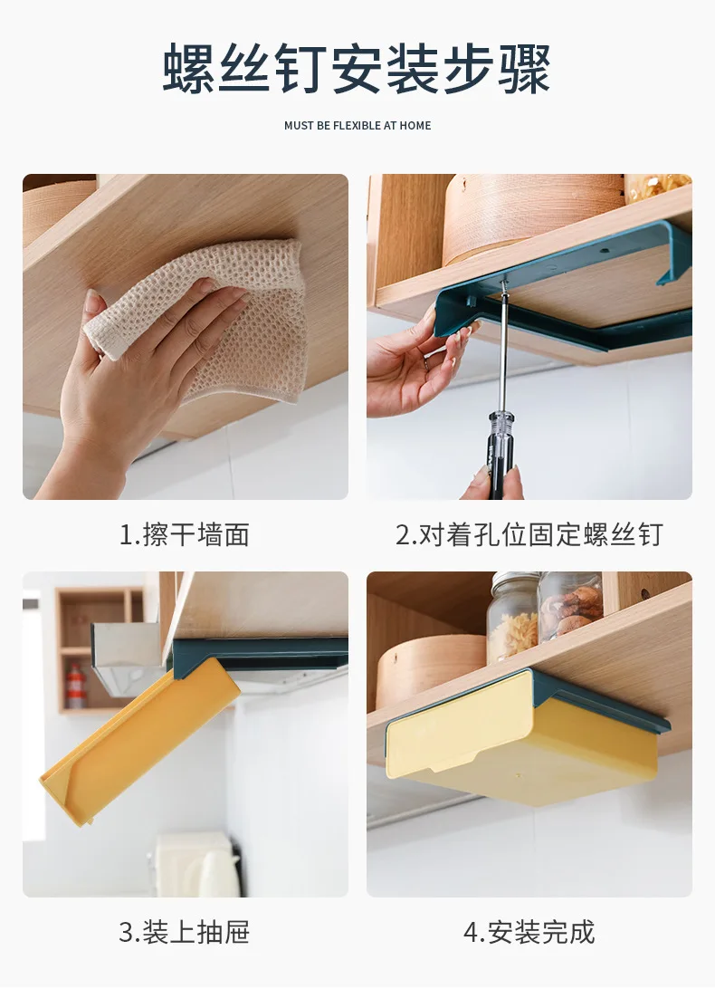 Скрытый ящик для хранения под столом, Многофункциональный кухонный шкаф, коробка для хранения пасты, ящик, пыленепроницаемый ящик для хранения