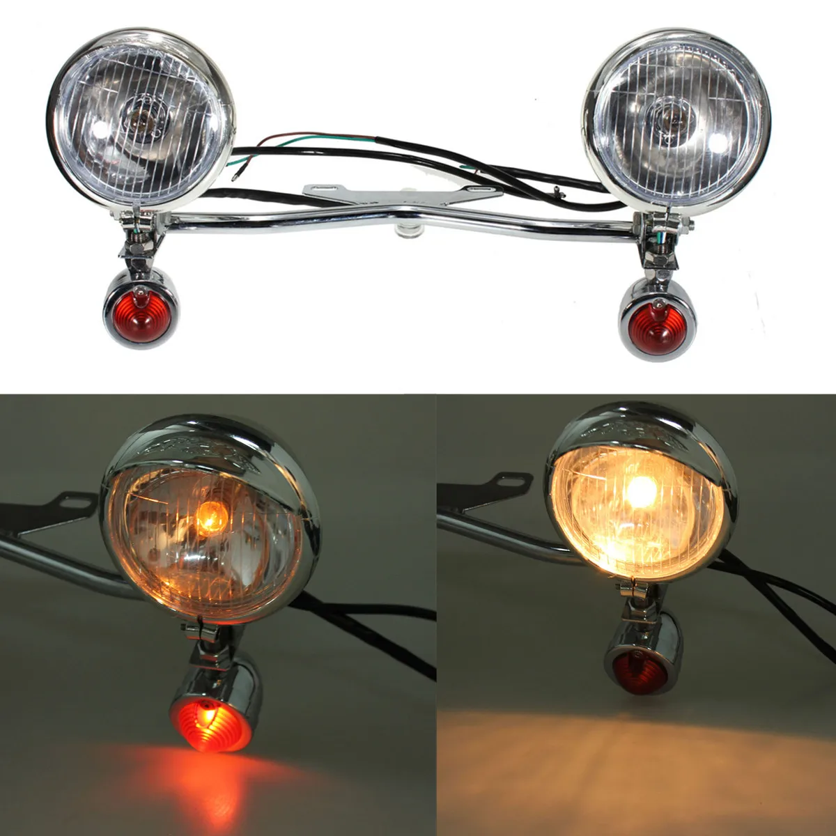 Особенности:-Подходит для большинства Harley tourings или любых пользовательских приложений.-Светильник предварительно просверлен, чтобы обеспечить внутреннюю проводку светильник s-Стальной светильник с круглым хромированным металлическим точечным светильник и поворотники-Хромированный светильник со светоотражающим интерьером-Фары для вождения: 4 "прозрачные линзы, 4 3/4" в ширину, 4 3/4 "в высоту от основания до верха. 2 1/2 дюйма длиной от объектива до точки.-Сигнальные огни поворота: мини-стиль, 2 дюйма в ширину, 2-1/2 дюйма в высоту от основания до верха, 2-7/8 дюйма в длину от объектива до точки. Цвет янтарный.Примечание: Пожалуйста, проверьте размер бара на картинке перед покупкой