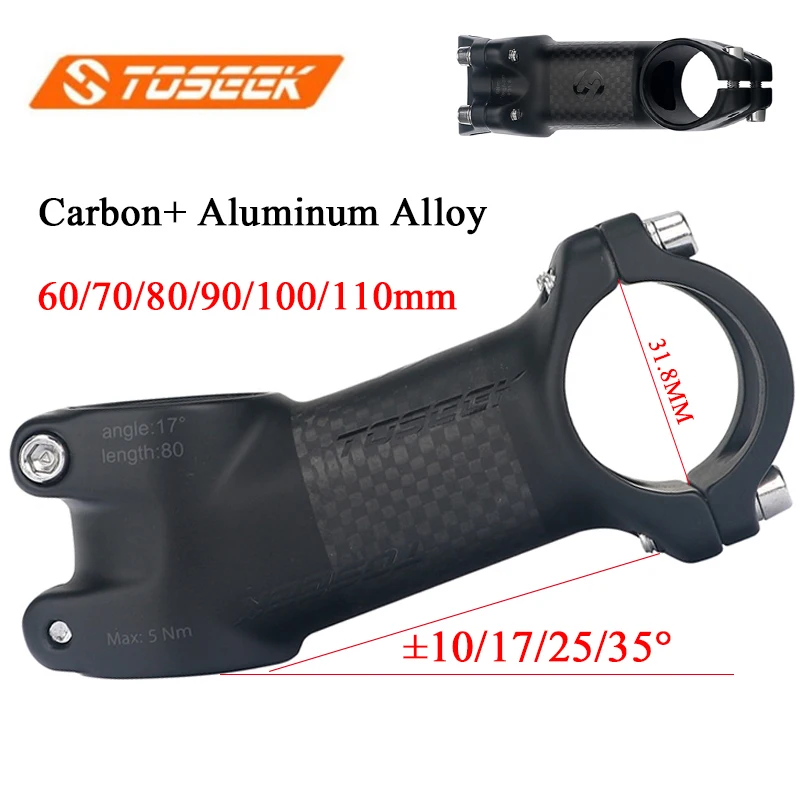 Шток руля дорожного велосипеда Toseek, 31,8 мм, 10172535 градусов, 60708090100110 мм