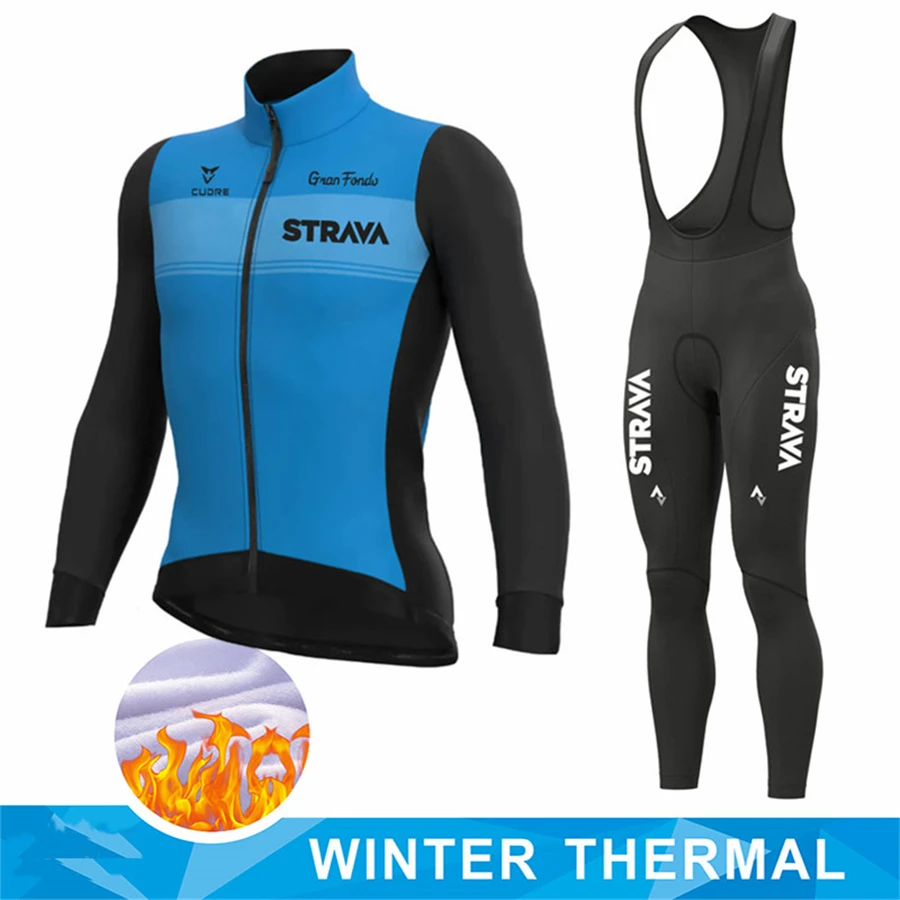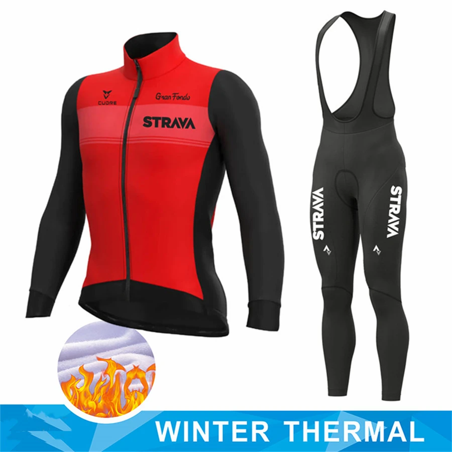 STRAVA новая команда Зимняя Теплая Флисовая одежда для велоспорта мужской костюм из Джерси с длинным рукавом для улицы езды на велосипеде MTB Одежда комбинезон брюки комплект