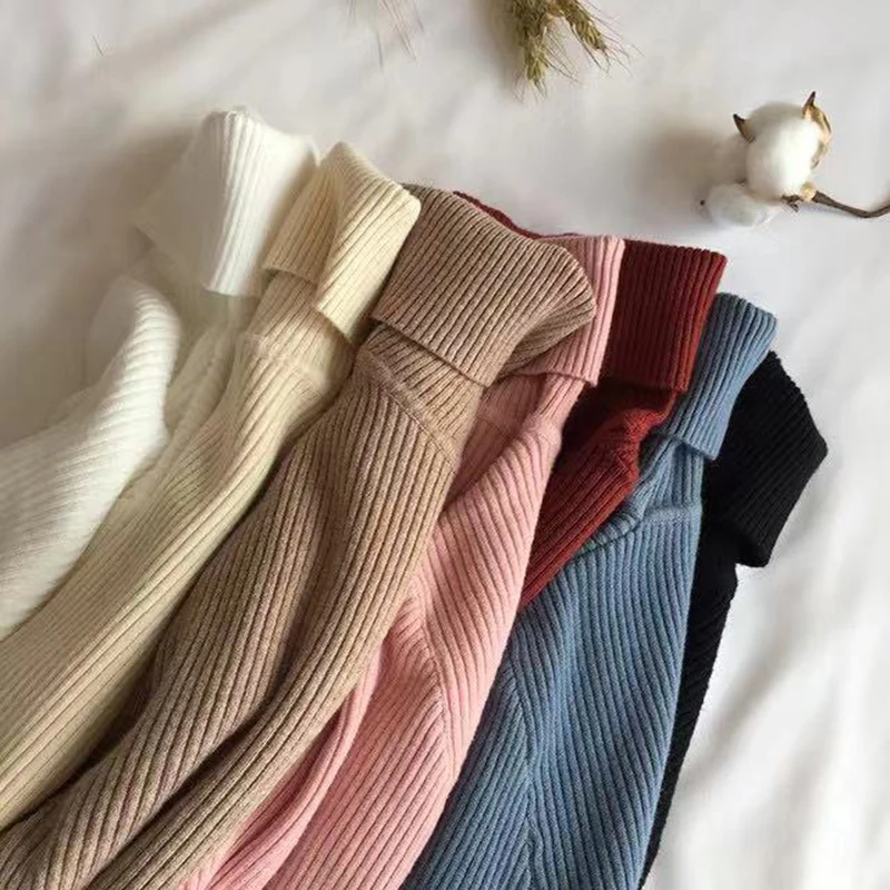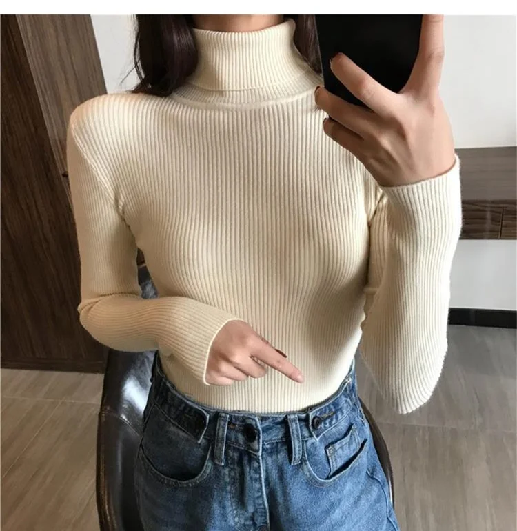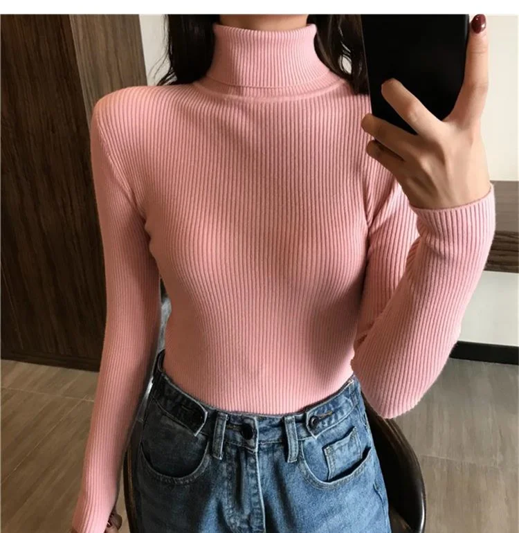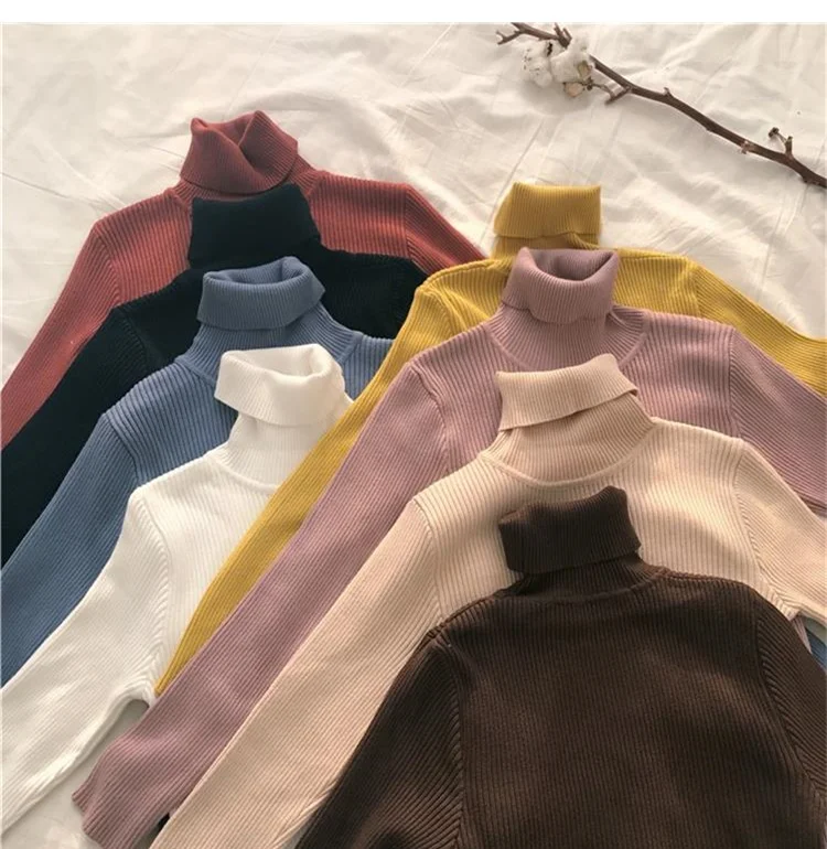 Свитер женский трикотажный с воротником-хомутом, базовый джемпер в рубчик, топ в Корейском стиле, пуловер
