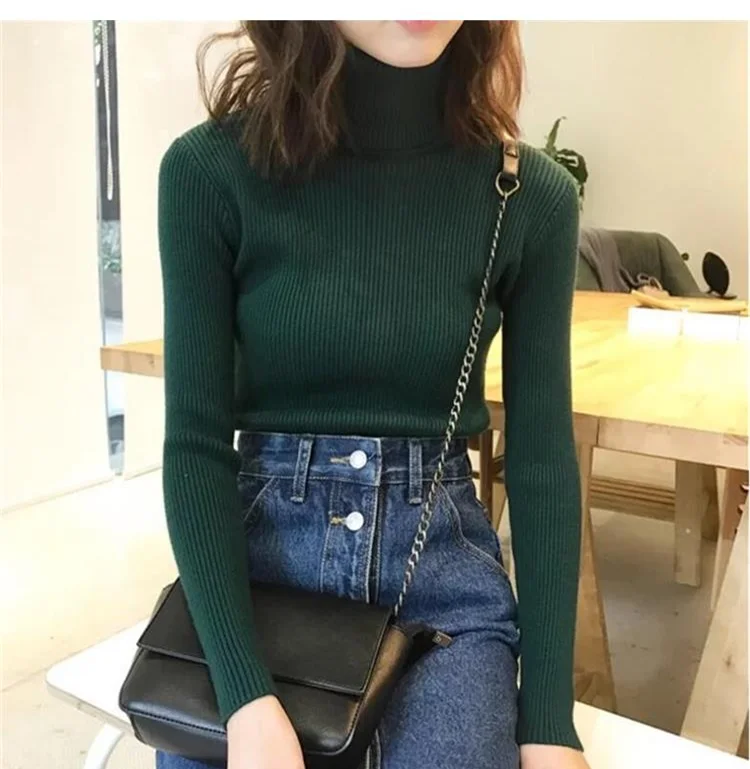 Женские свитера с высоким воротником, сезон осень-зима, корейский Т...