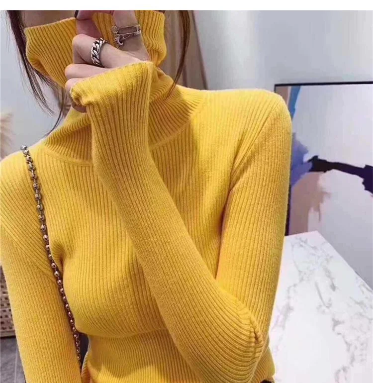 Свитер женский осенне-зимний, вязаный, в рубчик, с высоким воротник...