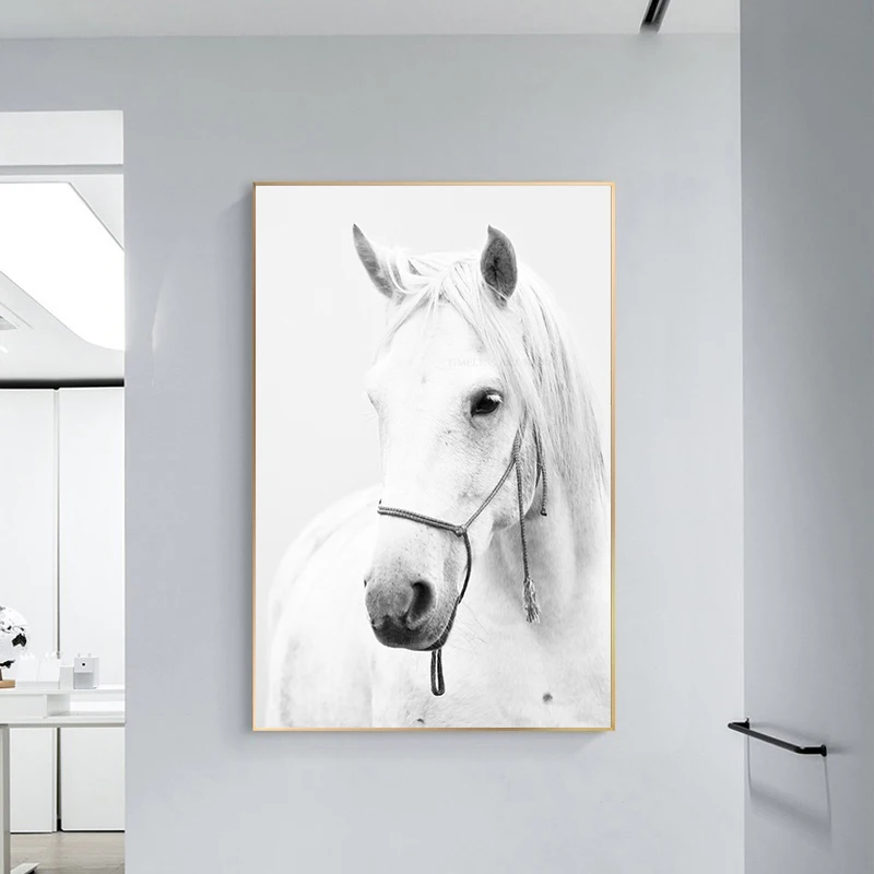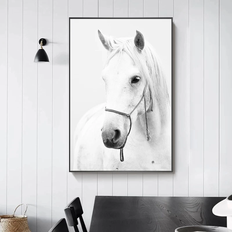 Современный настенный постер с изображением белой лошади, живопись на холсте с изображением животных, лошади, гостиной, фермы, домашний декор