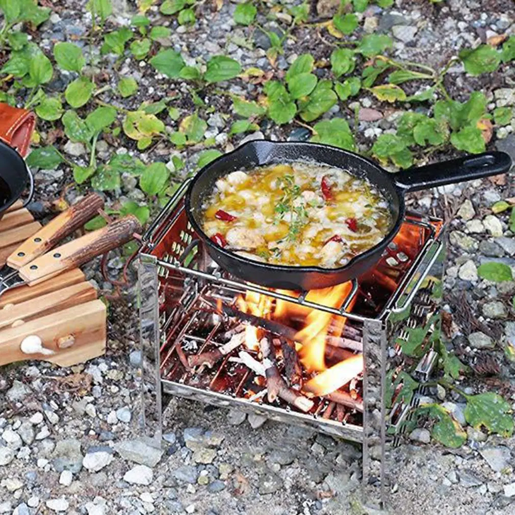 Туристическая деревянная горелка, косички для барбекю, складная плиточная плита для приготовления пищи на открытом воздухе, с грилевой тарелкой и косичками для барбекю
