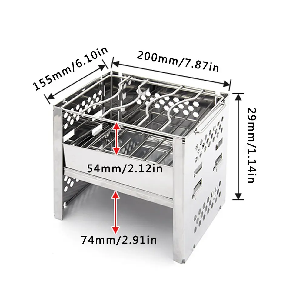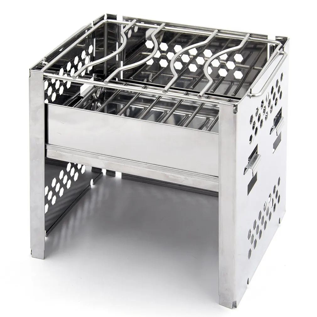 Особенности:1. Стабильный и прочный: Изготовлен из высококачественной нержавеющей стали, подходит для крепких рюкзаков.2. Портативный и ультра-компактный: походная плита изготовлена из нержавеющей стали, которая может складываться как книга, и оснащена чехлом для переноски.3. Многофункциональность: печь для кемпинга может сочетаться с различными горшками, приготовлением пищи, кипятком и BBC. Удовлетворить ваши потребности в кемпинге.4. Высокая эффективность: печь для кемпинга может не только использовать древесину, но и использовать спиртовые горелки, ветви, листья, уголь, частицы газа и твердого топлива, что удобно для кемпинга на открытом воздухе или пешего туризма.5. Широкий спектр использования: он очень подходит для кемпинга, пеших прогулок и треккинга.Описание:Этот кемпинг гриль освобождает ваши руки в любое время, в любом месте и очень подходит для наружного гриля. Он портативный и компактный, добавляя удовольствие вашей жизни на открытом воздухе.Характеристики:Основная часть процесса: штамповкаМожно ли взять гриль для барбекю: ДаСпецификация гриля/сковороды: Огнеупорная стойка, одиночная решетка с аксессуарами (см)Применимый номер: 1-2 человекаПосылка включает в себя:1 * печи для лагеря