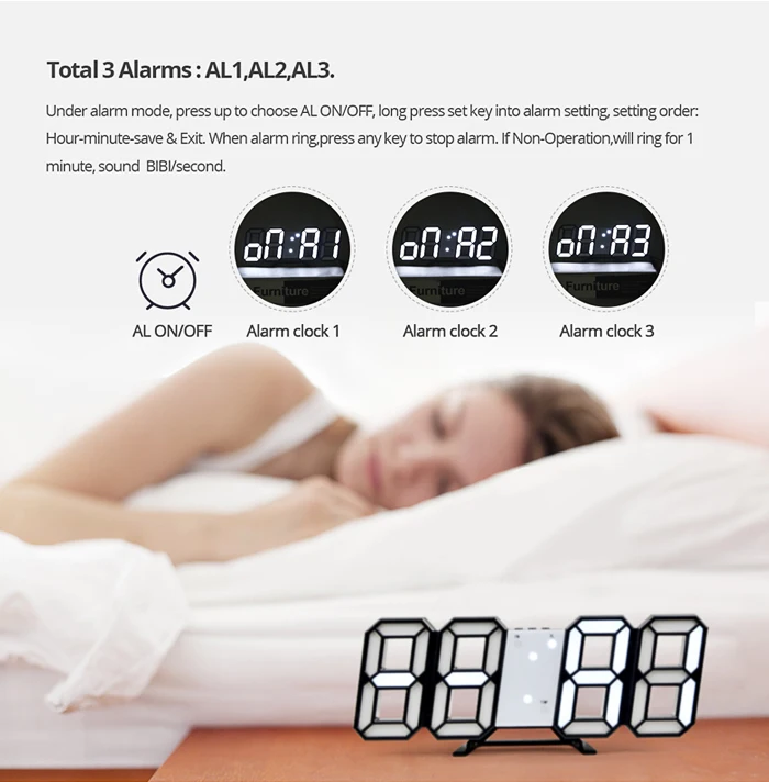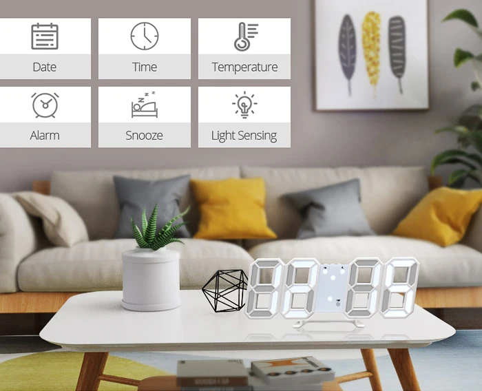 Большие светодиодсветодиодный цифровые настольные часы, 3D будильни...
