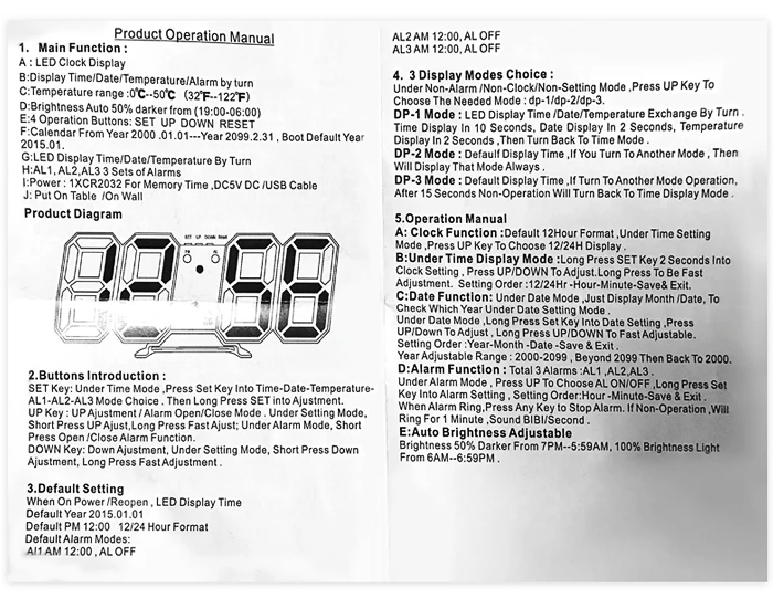 Model NumberModern Digital LED Table Desk Night Wall Clock