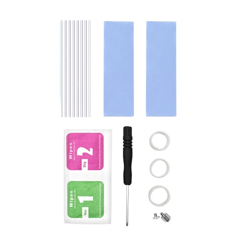 1x радиатор 70x22x3ммКоврик-2 шт.3 шайбы1 х винты M.2 + шпильки1 отвертка1 х сухая и влажная спиртовая упаковкаПримечание: