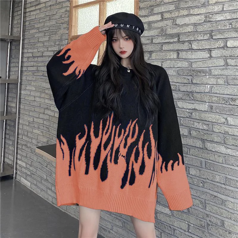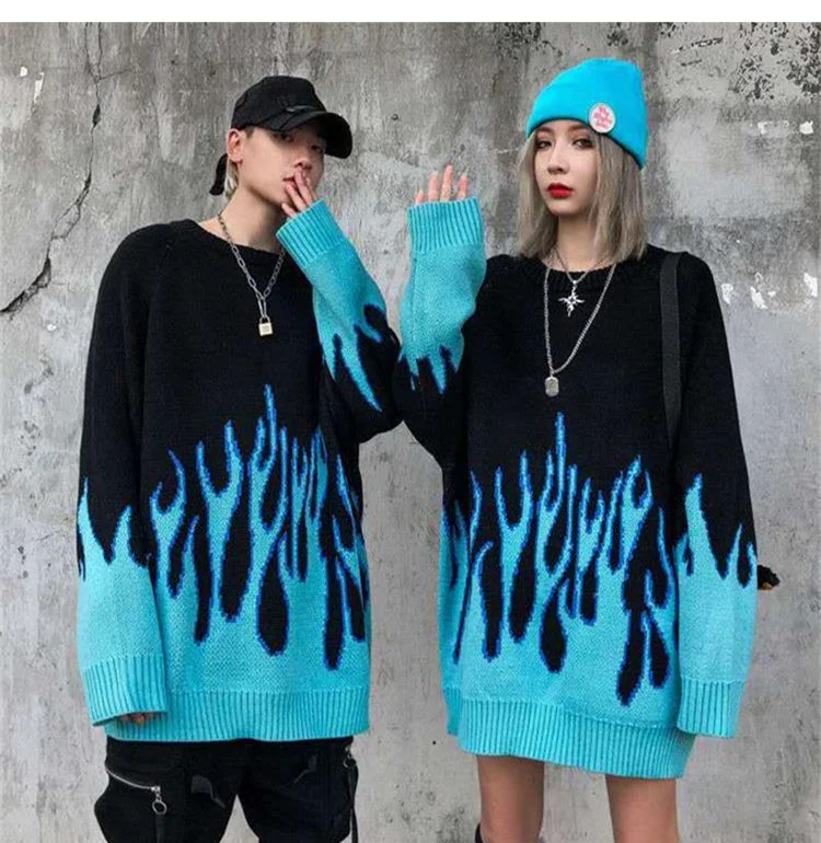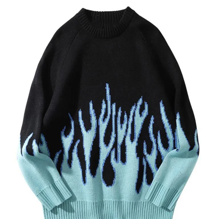 Модные свитера в стиле хип-хоп, вязаный свитер с огненным пламенем,...