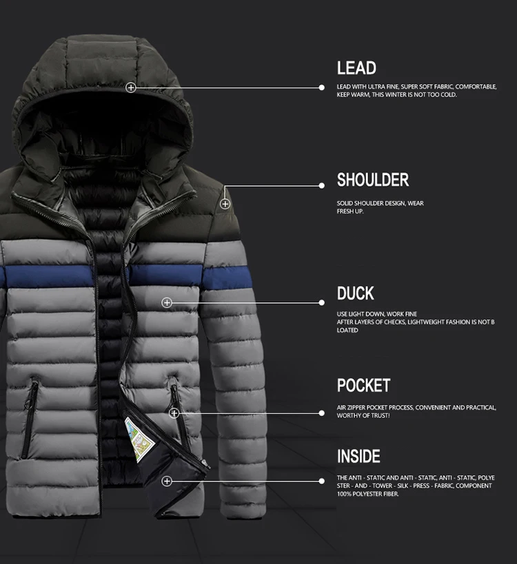 Мужская одежда, зимняя куртка, плотная куртка, зимняя куртка, модна...