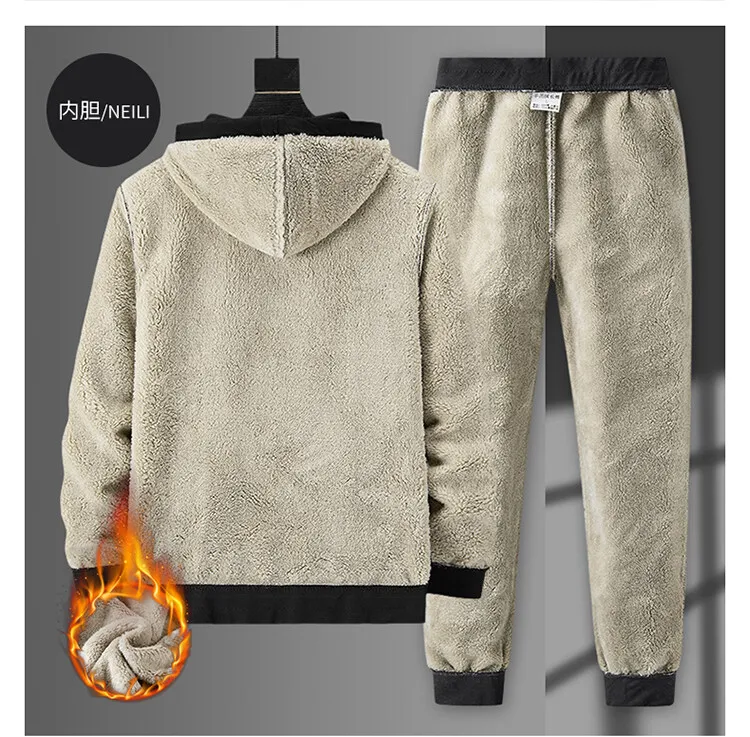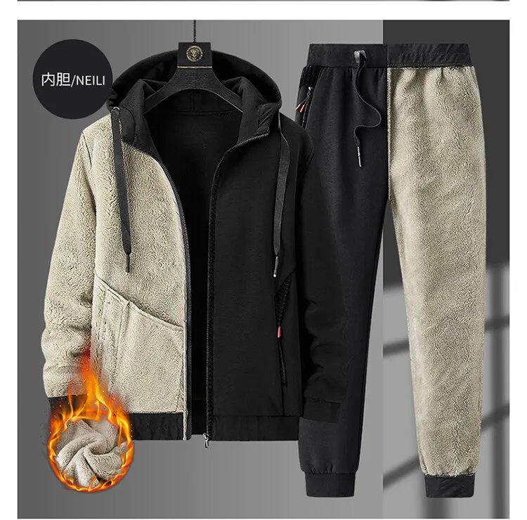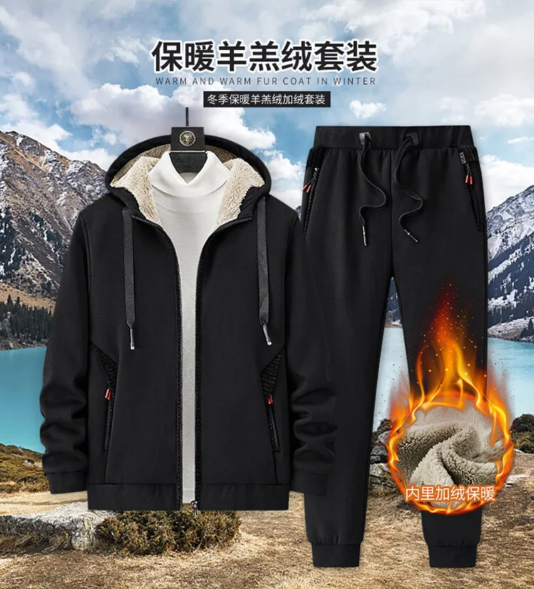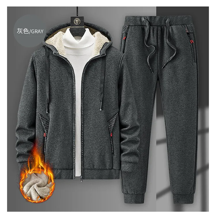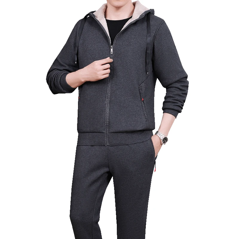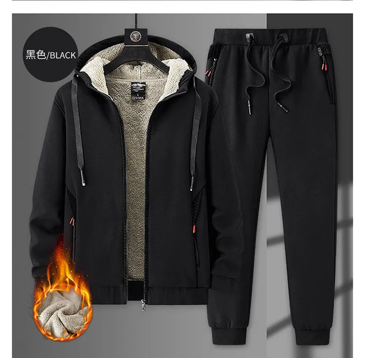 Спортивный костюм мужской, утепленная флисовая брендовая одежда с капюшоном, повседневный спортивный костюм, мужская куртка и брюки, теплая зимняя толстовка с мехом