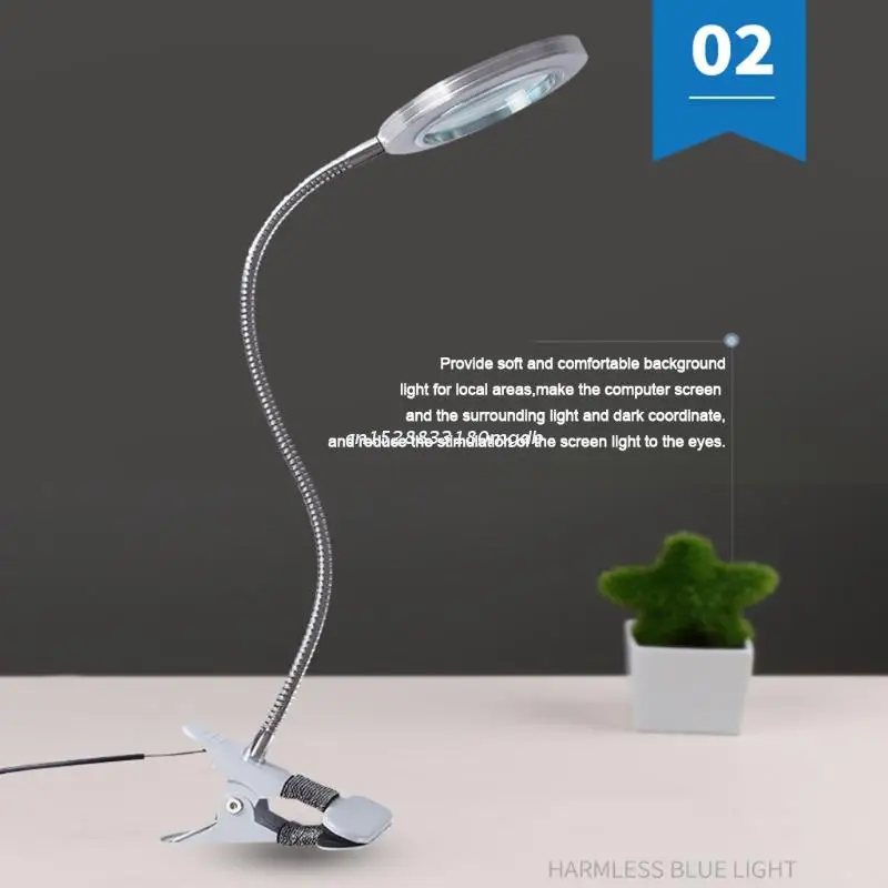 Magnifying Glass with Light 8X LED Lighted Magnifier Illuminated Lamp 360°Flexible Desk Magnifier Lens Reading DropshipOOTDTY Features: 100% brand new and high qualityThe Light Magnifier itself has flexible metal gooseneck & clip; fully adjustable to any desired position, ergonomics design for 360 degree designed for large viewing area. Desktop Magnifying Glasses are professional for reading, Inspection, Hobbies & Crafts,sewing. This magnifying glass with usb charge port that your can charged with computer, power bank, or cooperate with charge head. not include battery.Convenient and energy saving.ideal for close up work, hobbies & crafting not only provide more evenly lit and brighter viewing area but consume less power than traditional LEDs so Mini USB cable included.Aluminum lamp head is good for heat exchange and extend its service life. The tube can be bent freely, you can adjust the height and direction of the lamp flexibly.This magnifier glass is equipped with powerful 8x glass lens with magnification and distortion-free view which are covered by anti-glare reflector, therefore, lighting will be directed to an designated area without glare to your eyes, and provide envely lit viewing area.Specification: Material: Metal Magnification: 8XSwitch Mode: Push Button SwitchPackage Includes: 1x Illuminated Magnifier1x USB cable1x User manualnote: Please allow 1-3cm error due to manual measurement. pls make sure you do not mind before you bid.Due to the difference between different monitors, the picture may not reflect the actual color of the item.