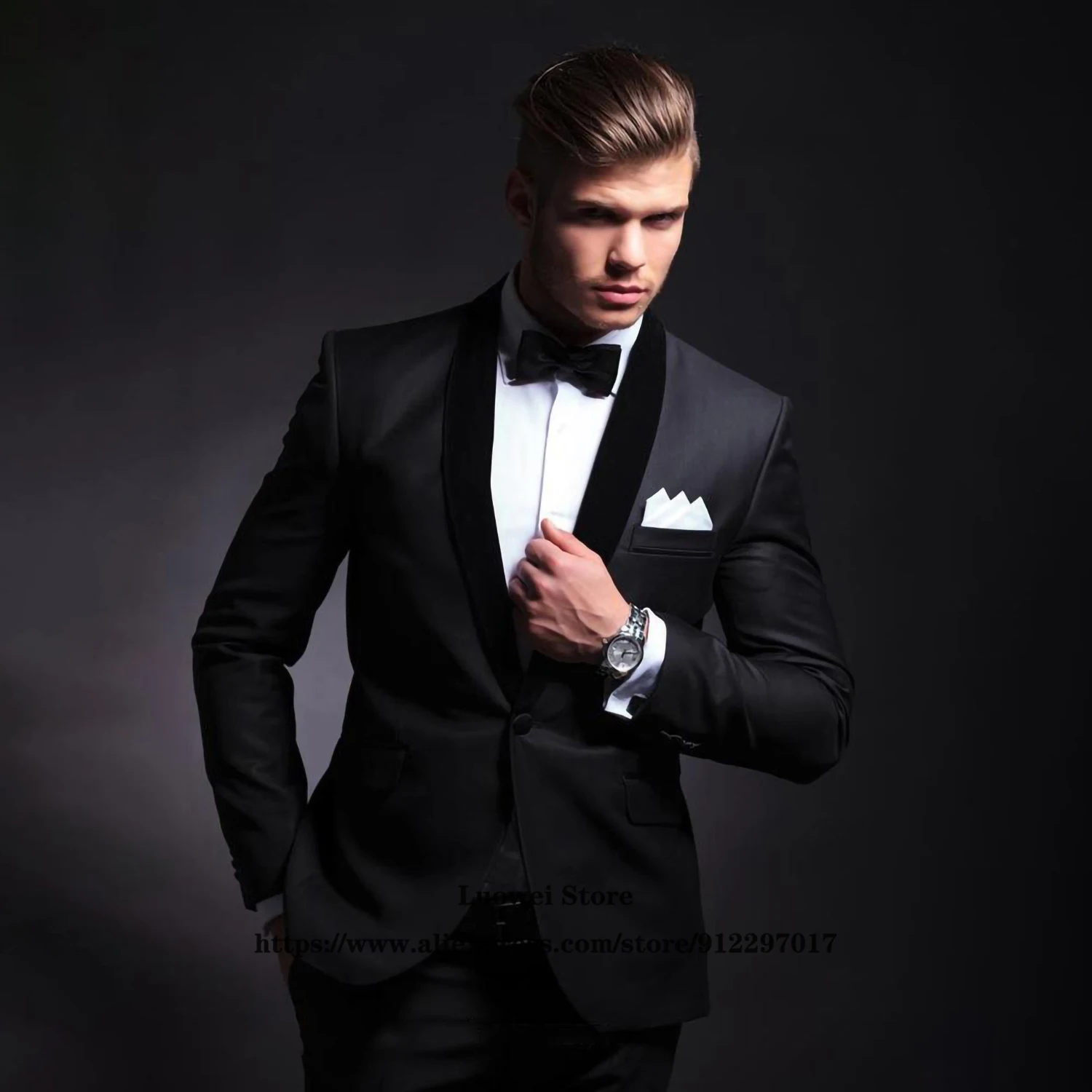 Модные Повседневные облегающие мужские костюмы, комплект из 2 предметов, пиджак и брюки для жениха на свадьбу, смокинг на одной пуговице, Официальный деловой блейзер для мужчин