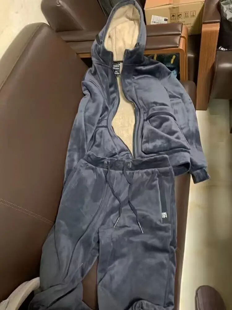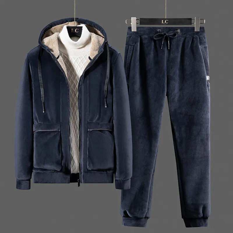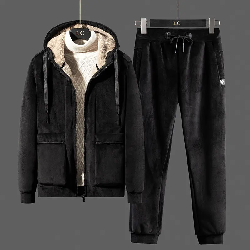 Мужской спортивный костюм из двух предметов, Повседневная теплая толстовка с капюшоном и флисовой подкладкой, зима 2021