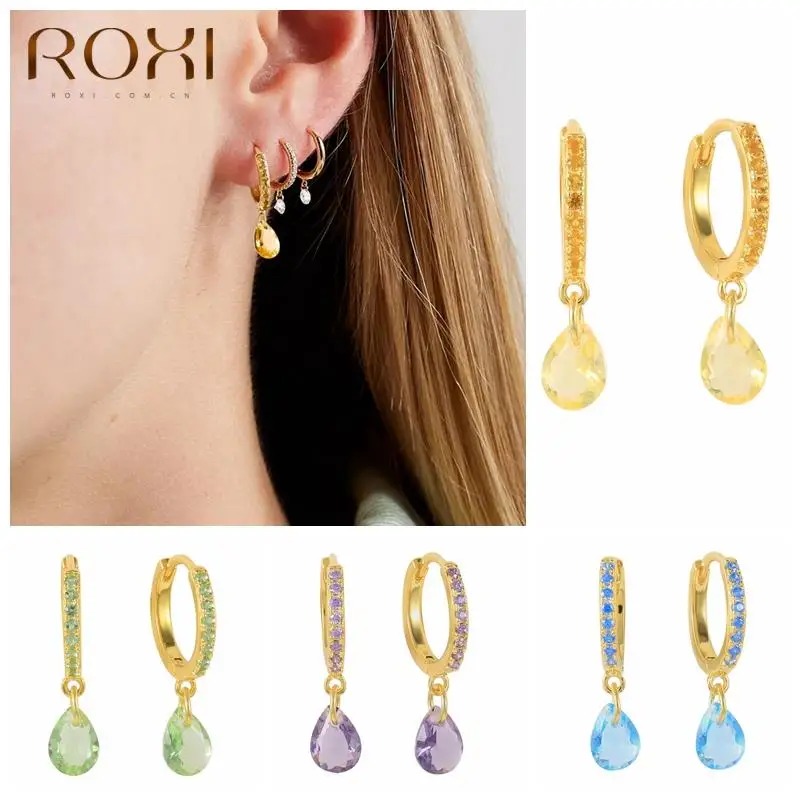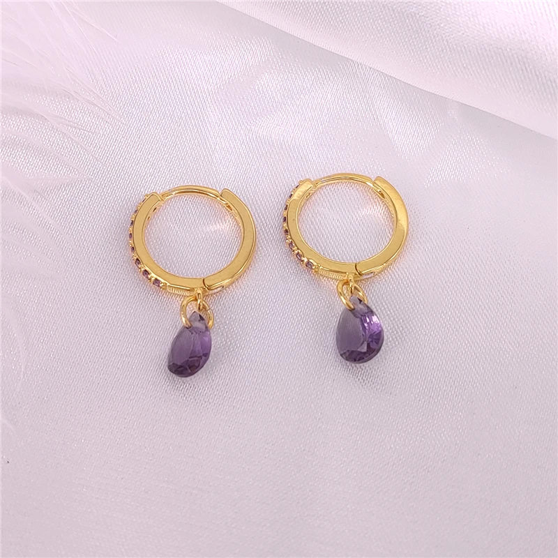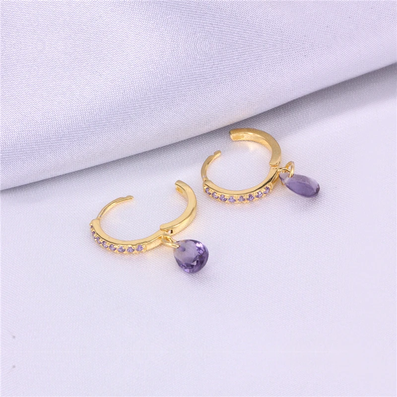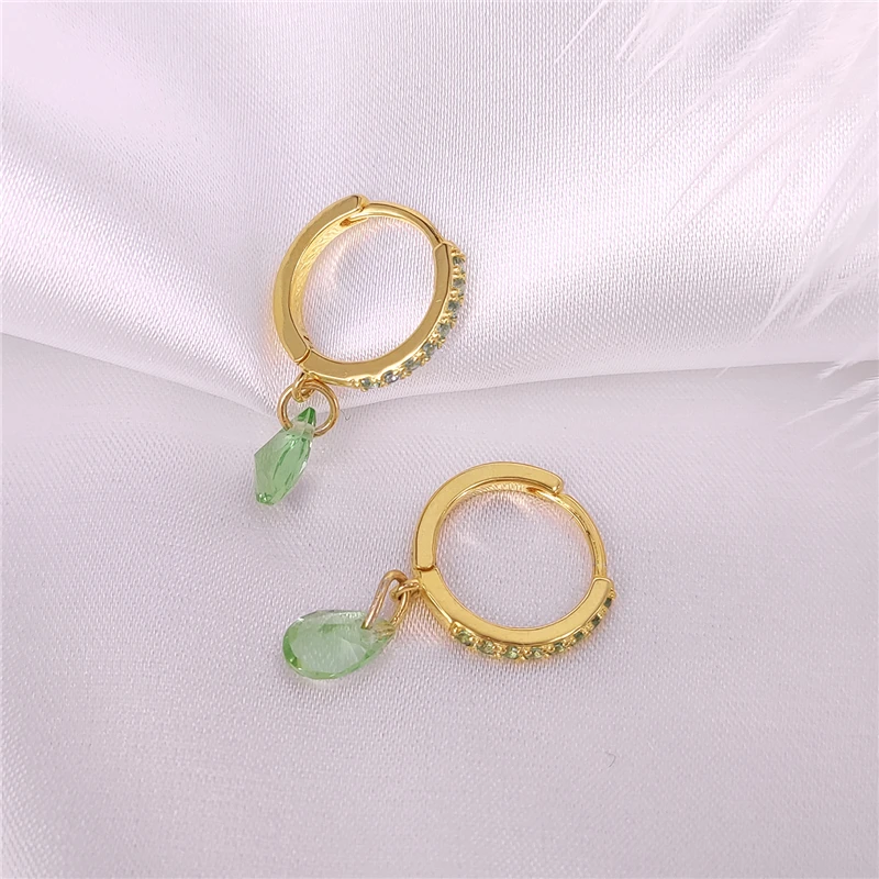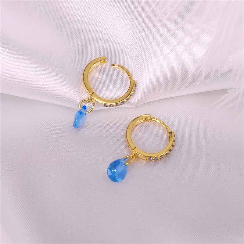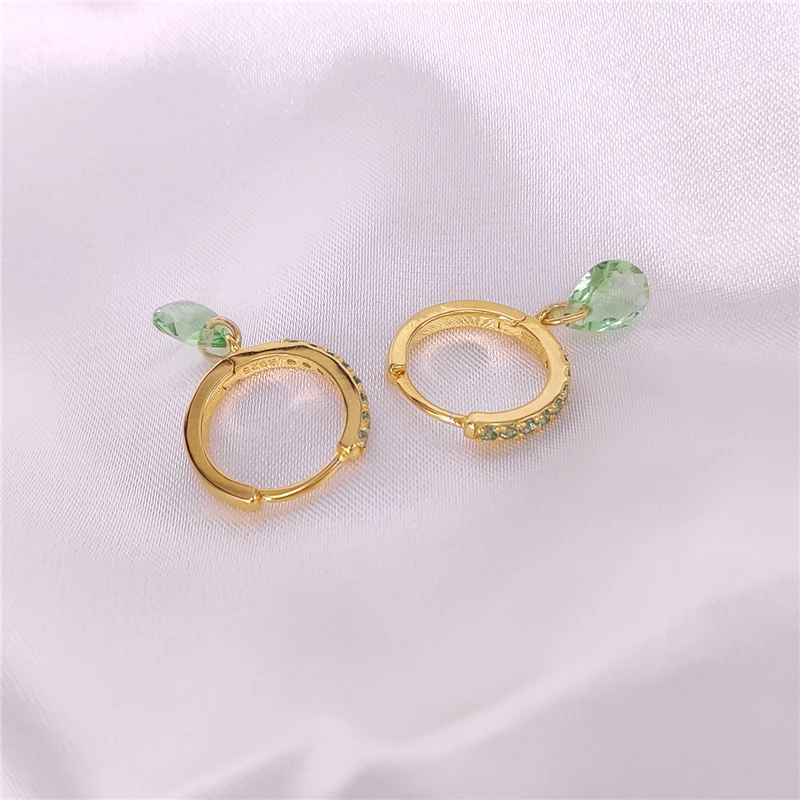 [Тип изделия]:Серьги-кольца с кристаллами в форме капли воды