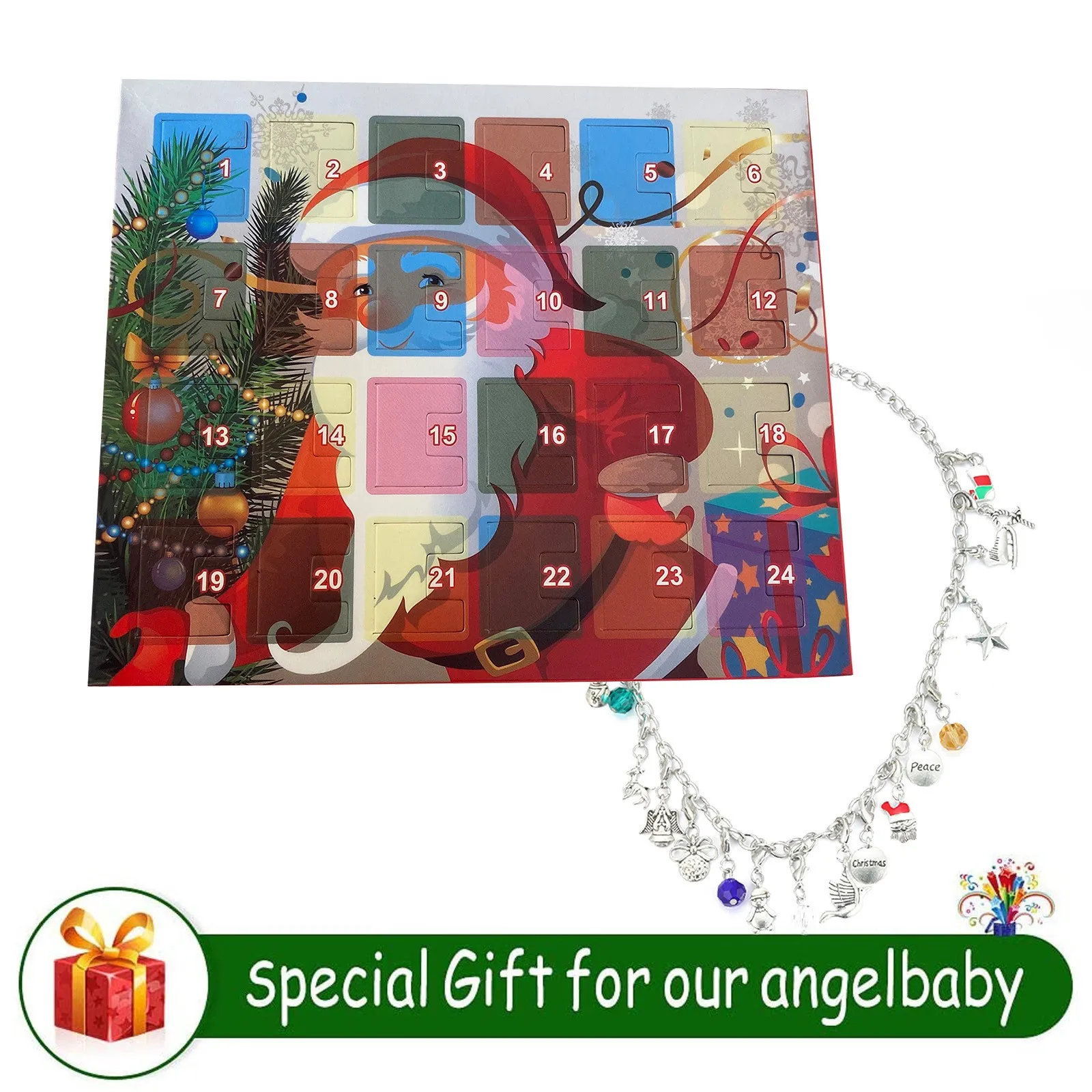 24 дня обратного отсчета для 1 рождественская Подарочная коробка DIY kit (23 подвески + 1 браслет + 1Ожерелье)