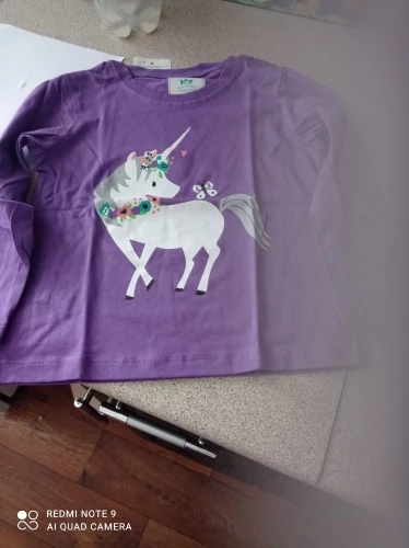 Отличное качество, очень насыщенные цвета, строчки ровные, ткань натуральная, приятная. Немного великовата в рукавах на рост 100, буквально на пару сантиметров, возможно, что после стирки подсядет, но я брала 110. Но мне и с закатанным рукавчиком нравится