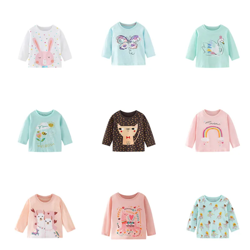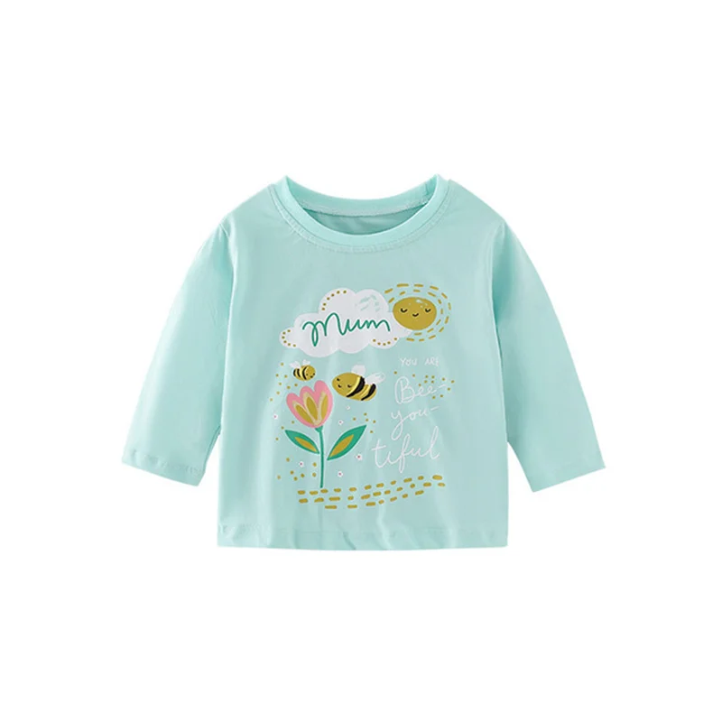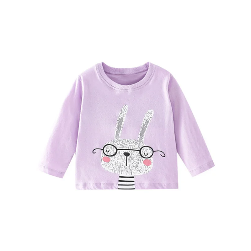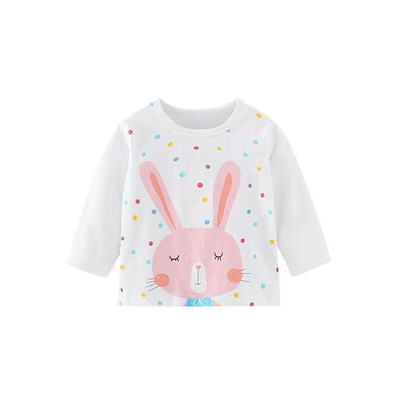 Футболка для маленьких девочек с изображением животных, кролика, хлопковая футболка с длинным рукавом и цветочным принтом, Детская футболка с мультяшным рисунком на весну и осень, топ, одежда