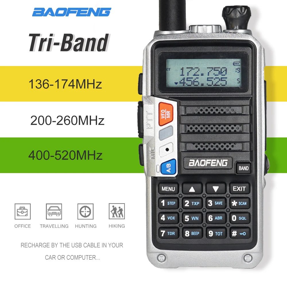 Рация Baofeng UV5R PRO трехдиапазонная 220-260 МГц, двухсторонняя радиосвязь, высокочастотный приемопередатчик UV 5R, обновленная Портативная радиостанция для охоты